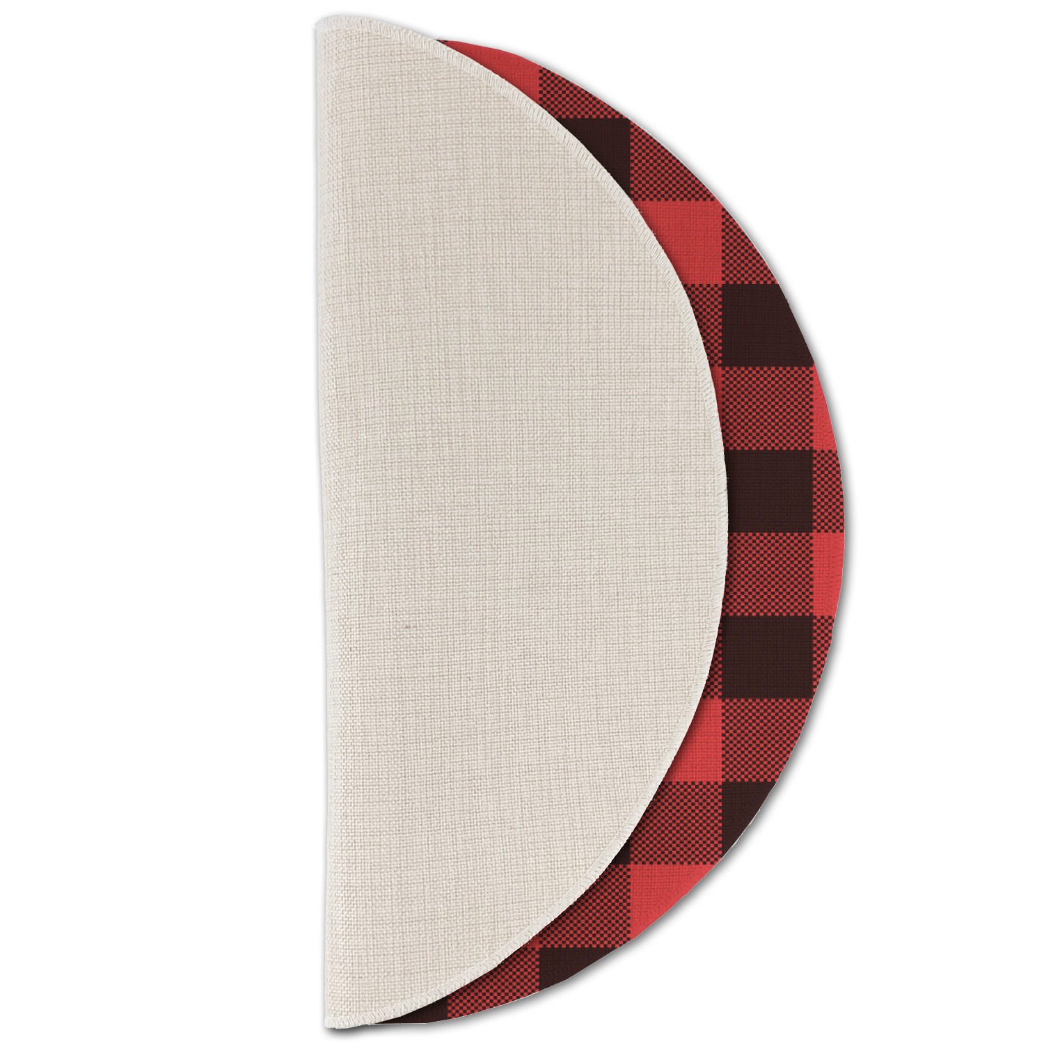The coordinating design has a pine tree filled with a wood texture and text surrounding it. All this sits on a black and red plaid background.