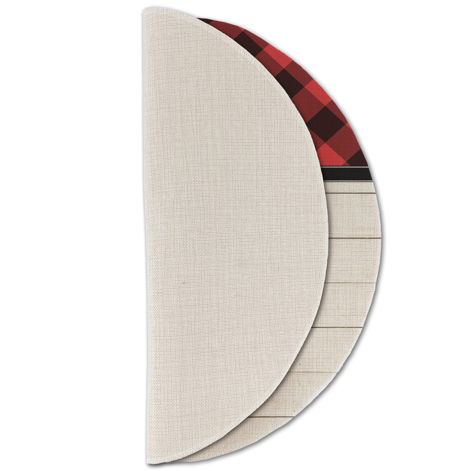 The coordinating design has a pine tree filled with a wood texture and text surrounding it. All this sits on a black and red plaid background.
