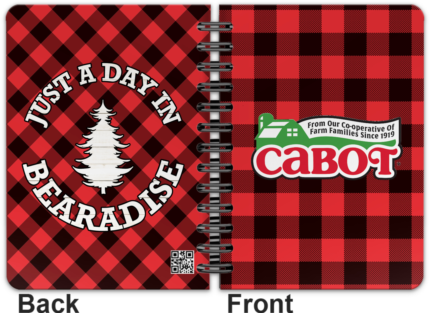 This spiral notebook includes 75 sheets of thick, ruled paper. The front and back of this custom notebook is made of a robust, laminate, plastic covering. We print your personalization on these two panels, underneath a glossy finish, which emphasizes the colors of your design. The two panels and the sheets of paper are held together by a sturdy, black coil. The paper within your bound notebook is perforated for easy, clean tearing.