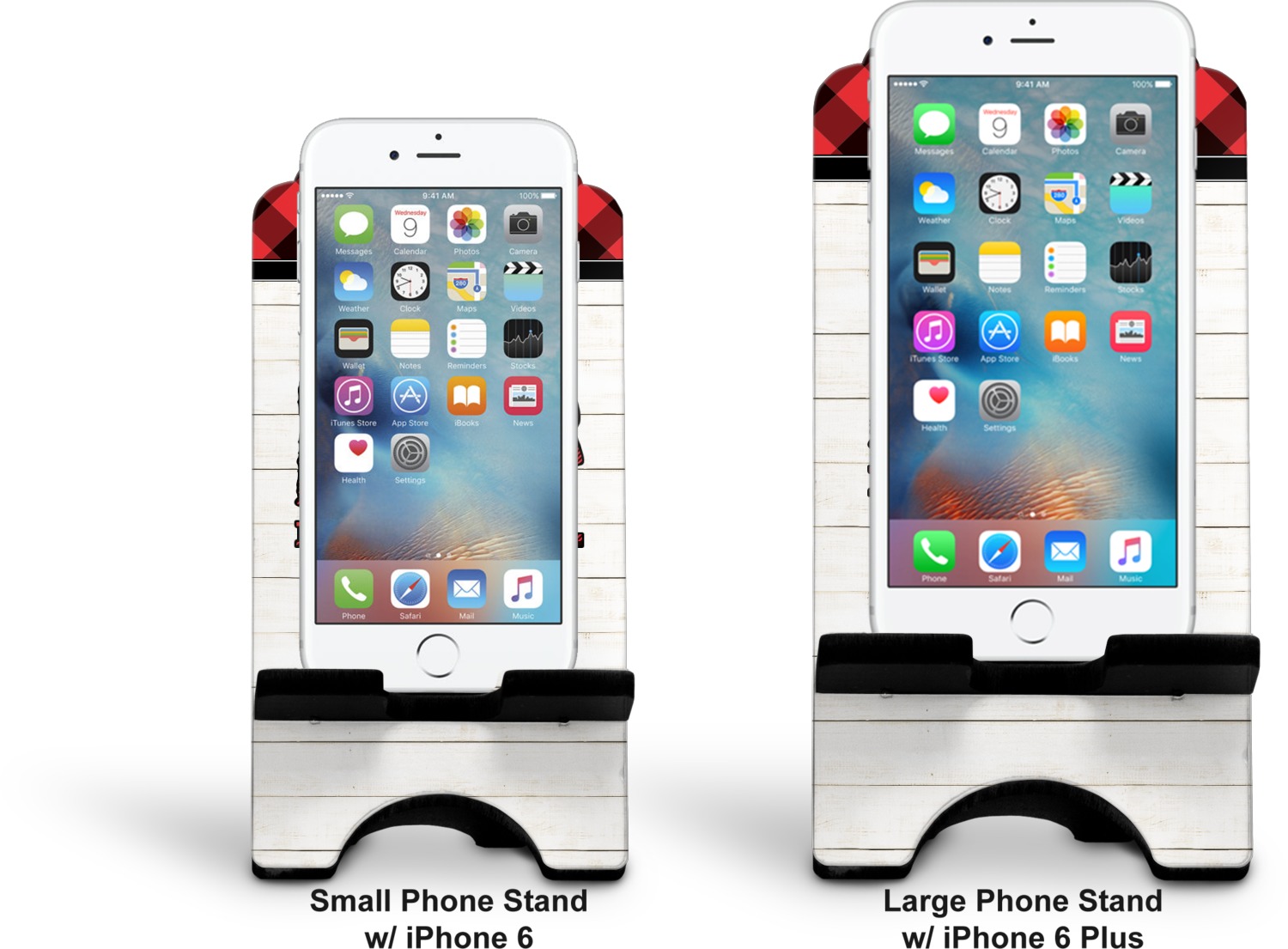 To meet your needs, we offer four variations of this IPhone stand. The backboard of the first version is shaped as a plain, yet sleek rectangle, and is available in two sizes. Our smaller size is approximately 4 by 3.25 by 7 inches, while the larger model is 4 by 3.77 by 8.5 inches. Alongside this model, we also provide you with a more decorative option. The upper part of our second version features a curved edge, for a classy, suave appearance. This phone holder is also sold in two sizes: a smaller version, which is 4 by 3.25 by 7 inches, and our larger model, which is 4 by 3.77 by 8.5 inches. Both models will support large phones, but the larger model is better if you wish to proudly display your personalized design.