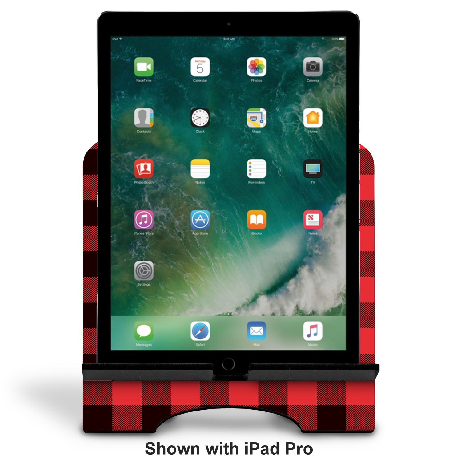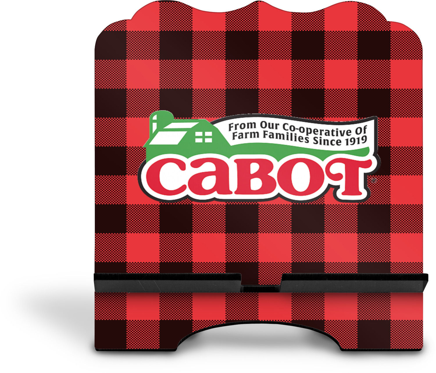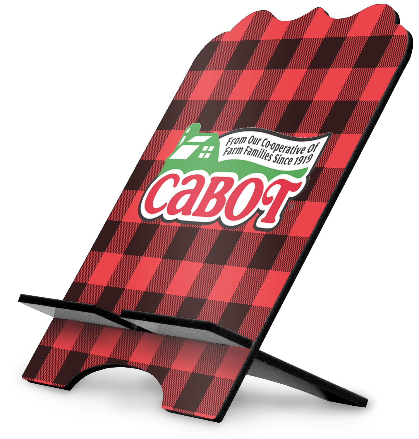 The stand is comprised of two hardboard pieces that fit snugly together and stabilize one another. The bottom part of the iPad stand supports your tablet, and has space for your tablets charger while in use. At 9.25" x 11.5", this tablet mount can support a device between the sizes of the iPad Pro and the iPad Mini 2. The uppermost part of the stand features a decorative, curved edge for a classy, suave appearance. We print your customization atop the face of the stand, in vibrant color. The remaining sides are colored a sleek black.