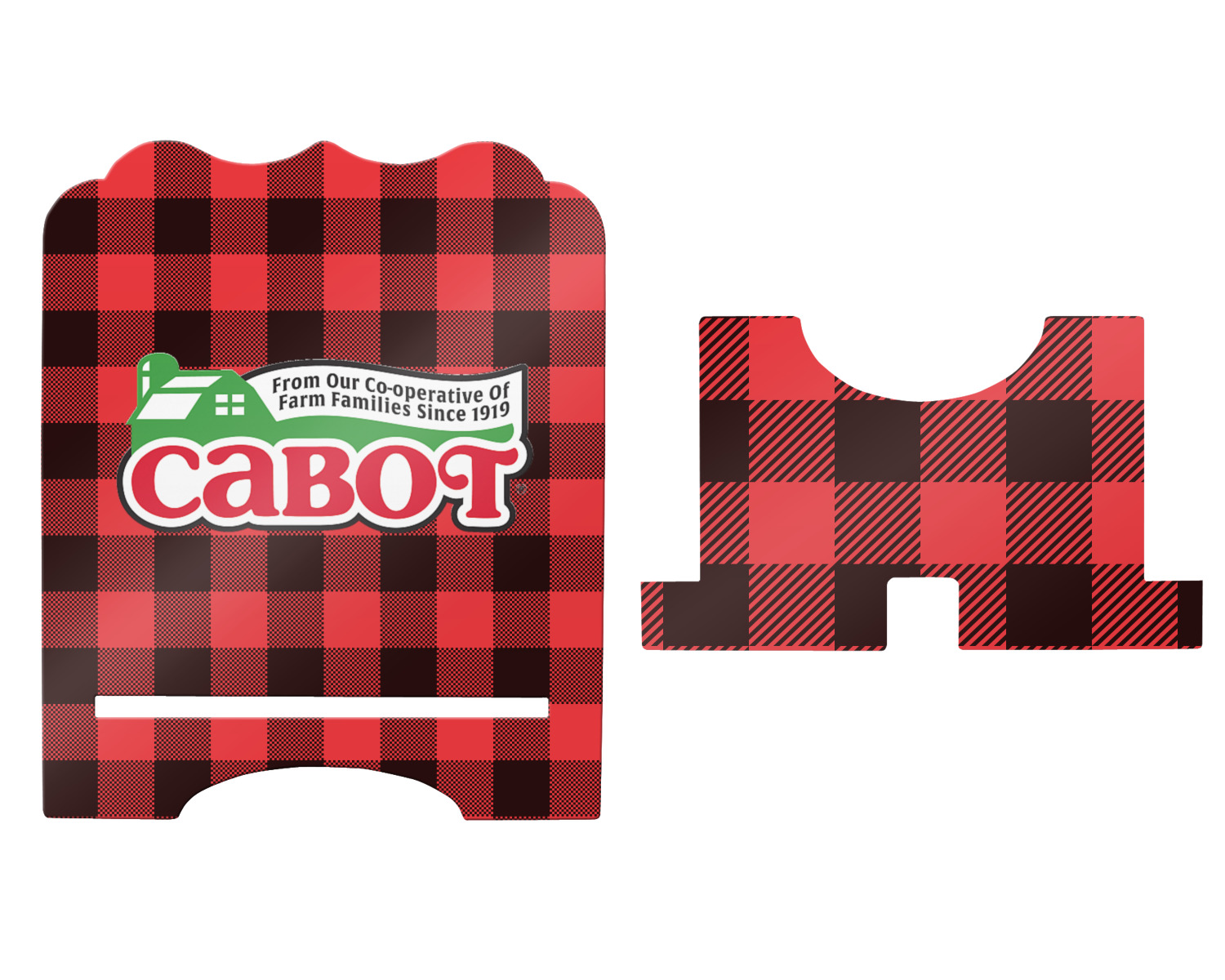 The coordinating design has a pine tree filled with a wood texture and text surrounding it. All this sits on a black and red plaid background.