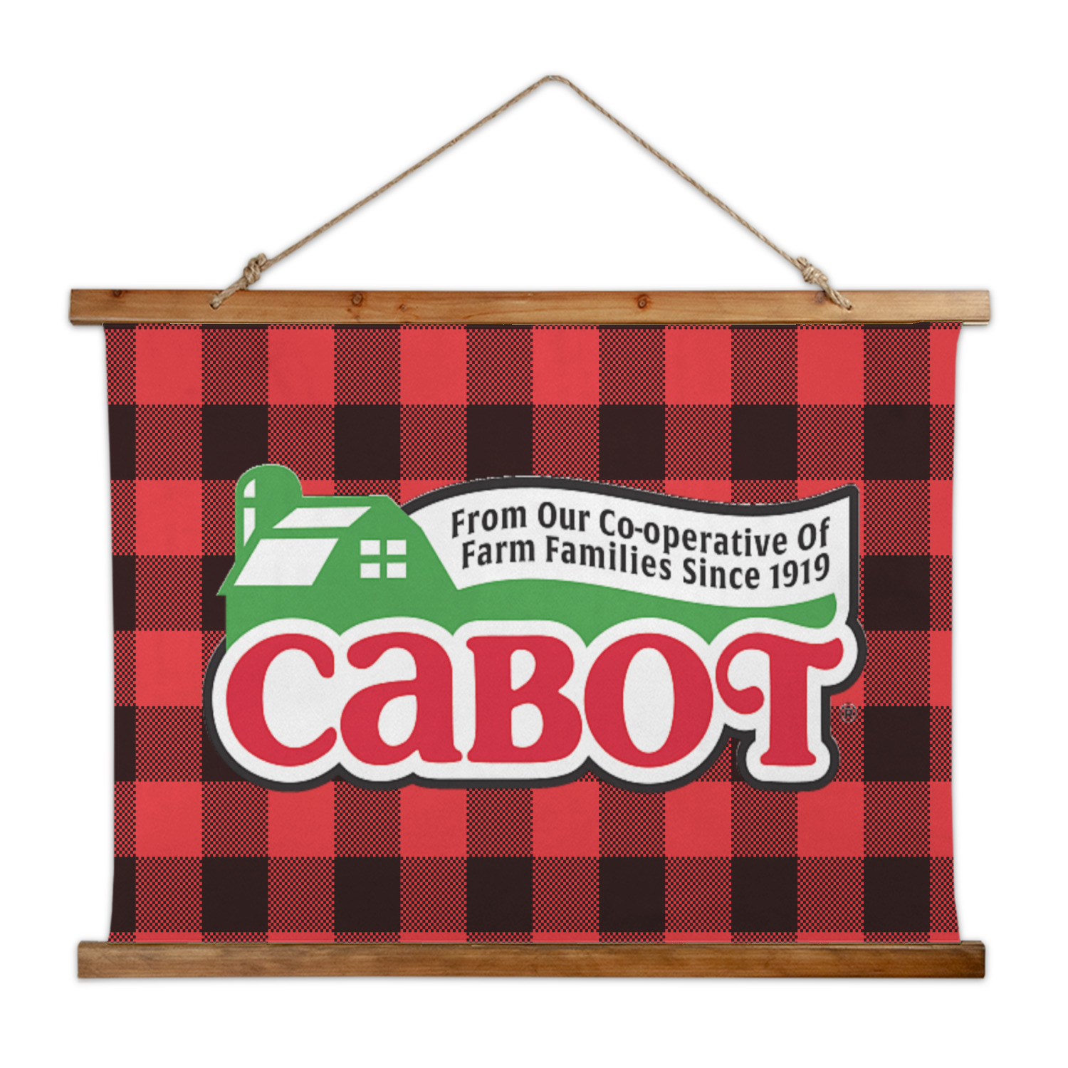 Made in two different orientations - portrait or landscape - both are 26" x 36". Your design is printed on a high quality polyester fabric with hemmed edges. The wood on the top and bottom of the tapestry is 1.25" tall and 0.25" thick and there are two pieces on top and bottom which sandwich the fabric.