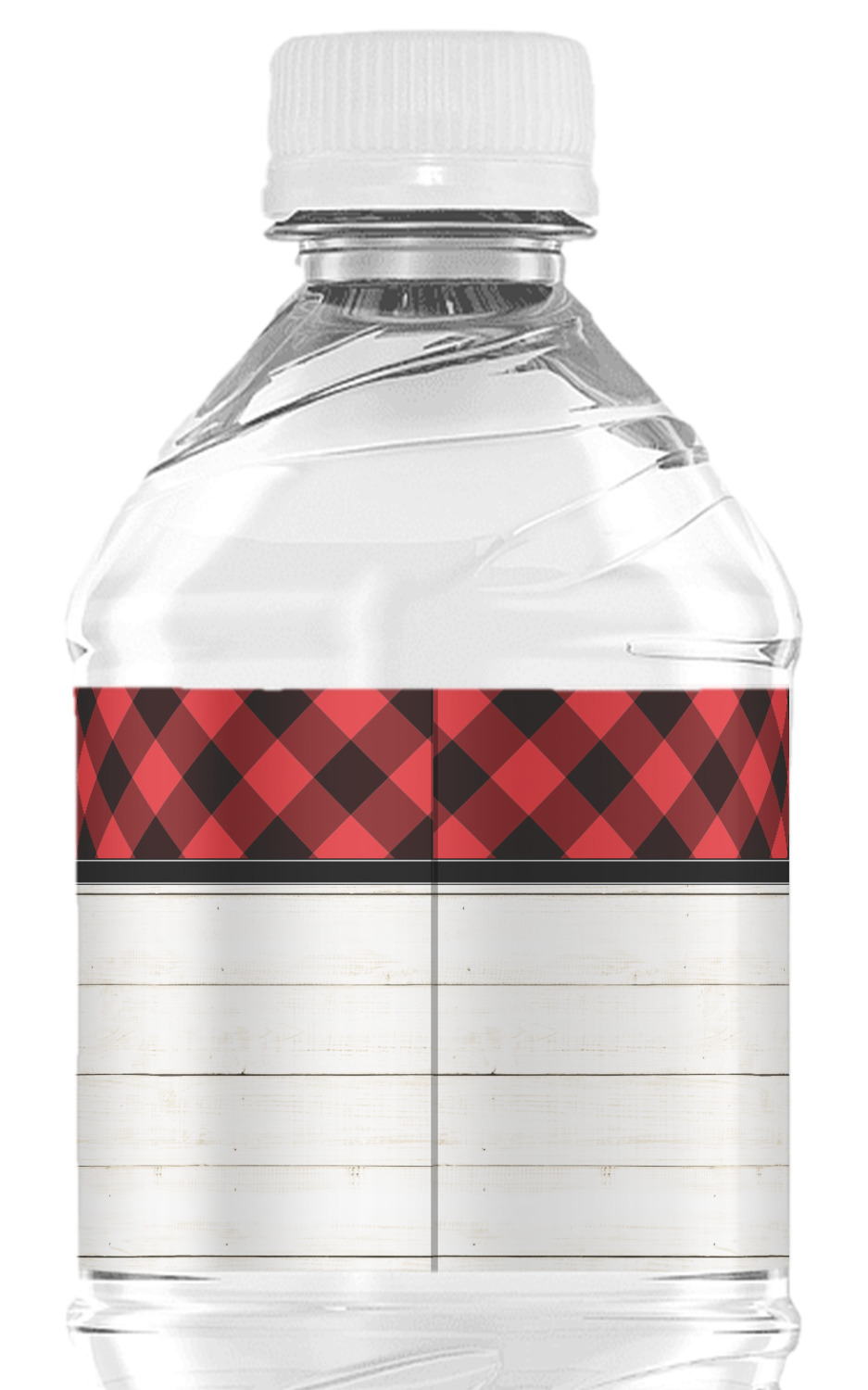 The main design is split into two asymmetrical sections. The top section is a diagonal red and black plaid, while the bottom is a light wood texture. On top of the wood texture is where your graphic and personalization go! The bear graphic and text below are filled with another black and red plaid.