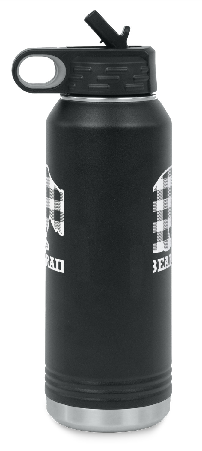 These 32 oz. water bottles are constructed from 18/8 durable food grade stainless steel. The inside of the water bottle is silver; while the outside is powder coated black