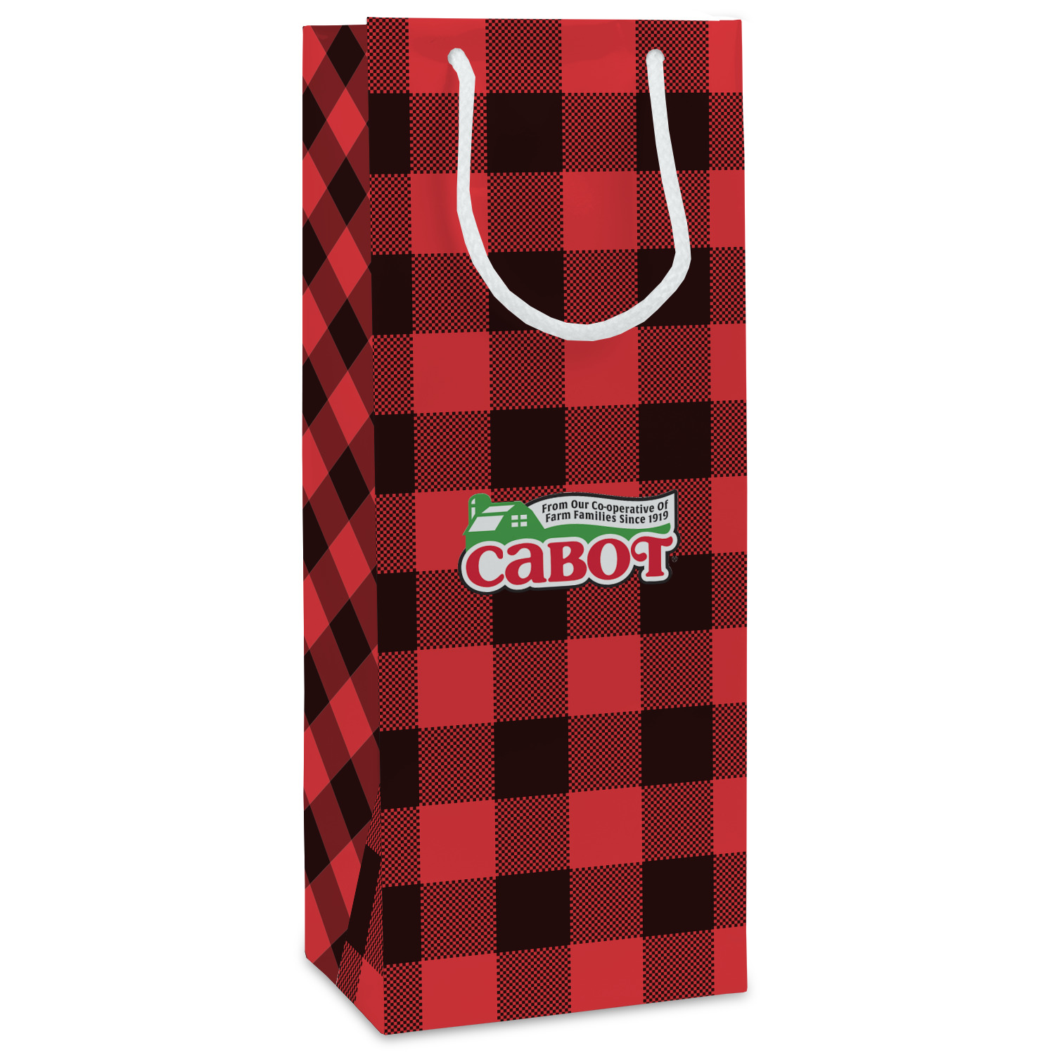 Our wine bags are printed on premium paper. The bags are then cut, scored and folded. The handles and cardstock base it attached. These custom wine bags are printed and made in the USA.