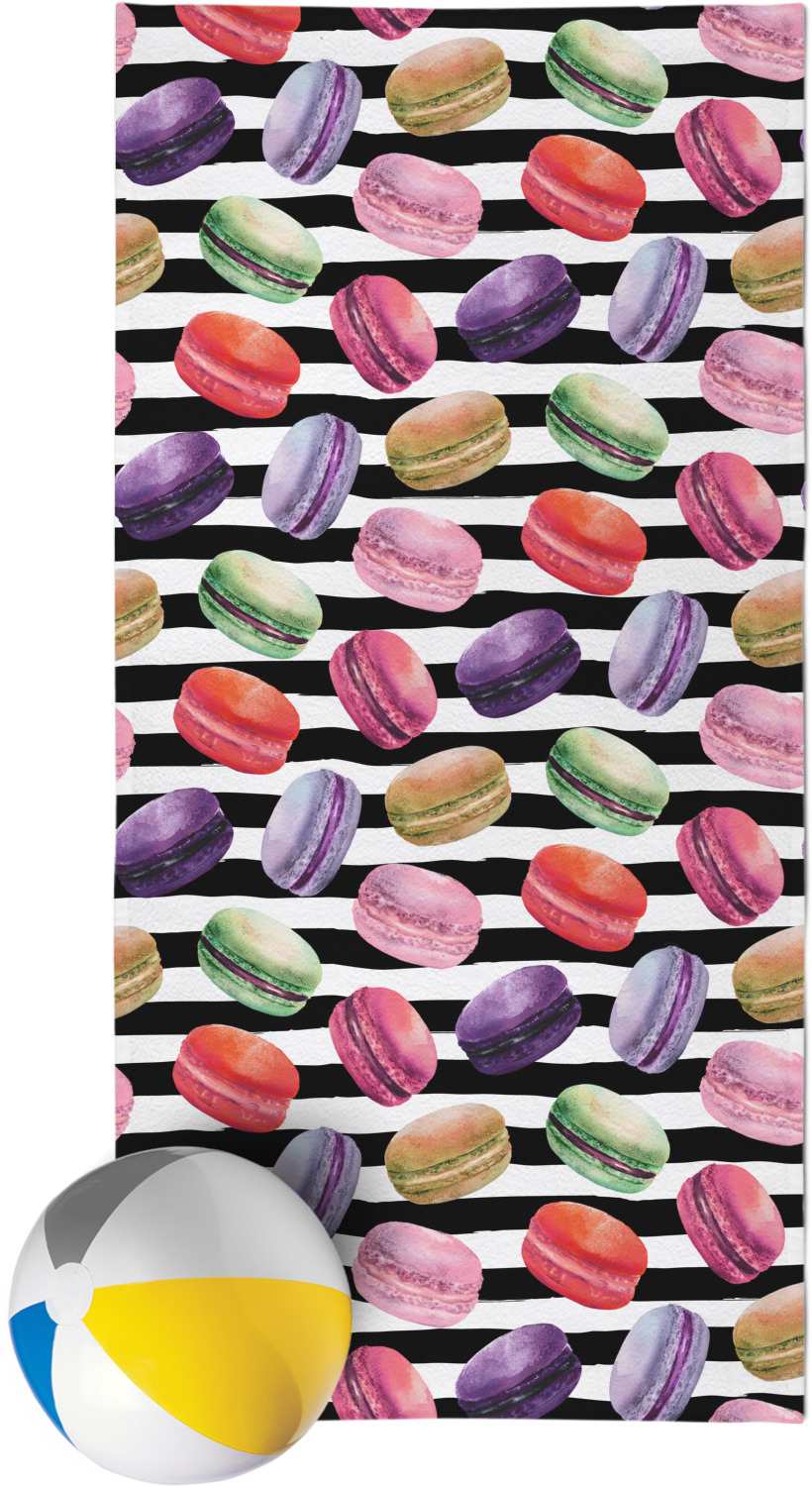 This design simply has the adorable macaron pattern with a striped pattern behind it. You are easily able to add any content you wish to personalize it. The macarons are all different fun colors. You will see green, purple, yellow, red, and pink. The stripes directly behind them are black and white. This design is perfect for any macaron lover or foodie. They will be sure to brighten up your life.