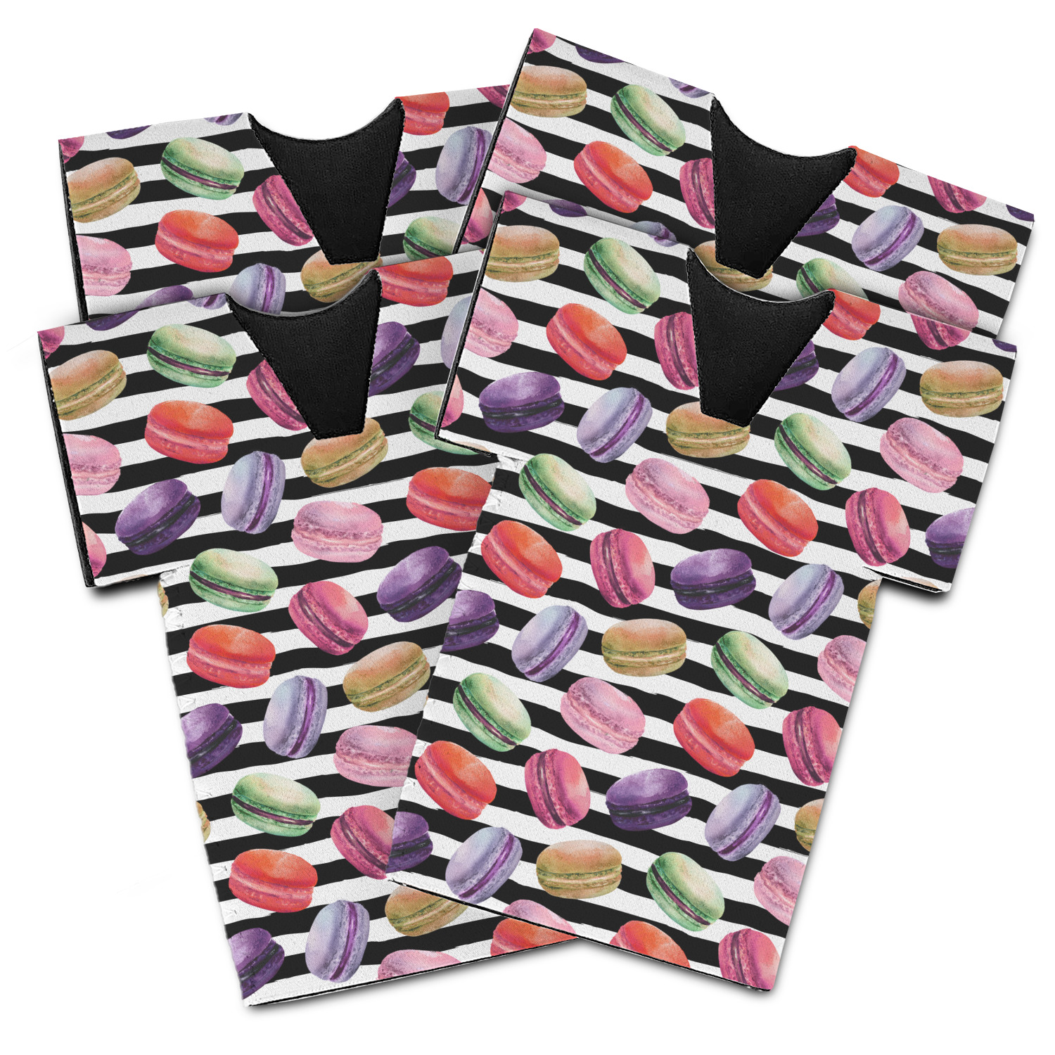 This design simply has the adorable macaron pattern with a striped pattern behind it. You are easily able to add any content you wish to personalize it. The macarons are all different fun colors. You will see green, purple, yellow, red, and pink. The stripes directly behind them are black and white. This design is perfect for any macaron lover or foodie. They will be sure to brighten up your life.