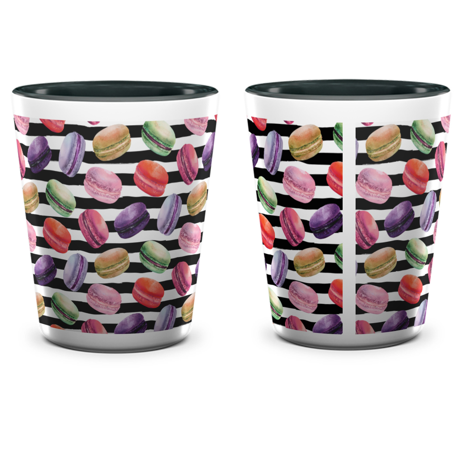 Made from ceramic these shot glasses are printed in full color with the design of your choice. These are a standard 1.5oz size and stand 2.25" tall. Available in a full white ceramic or a two-tone with a black color inside the shot glass. Buy a single or a set of 4, all of which can be designed separately to get you just what you want and need.