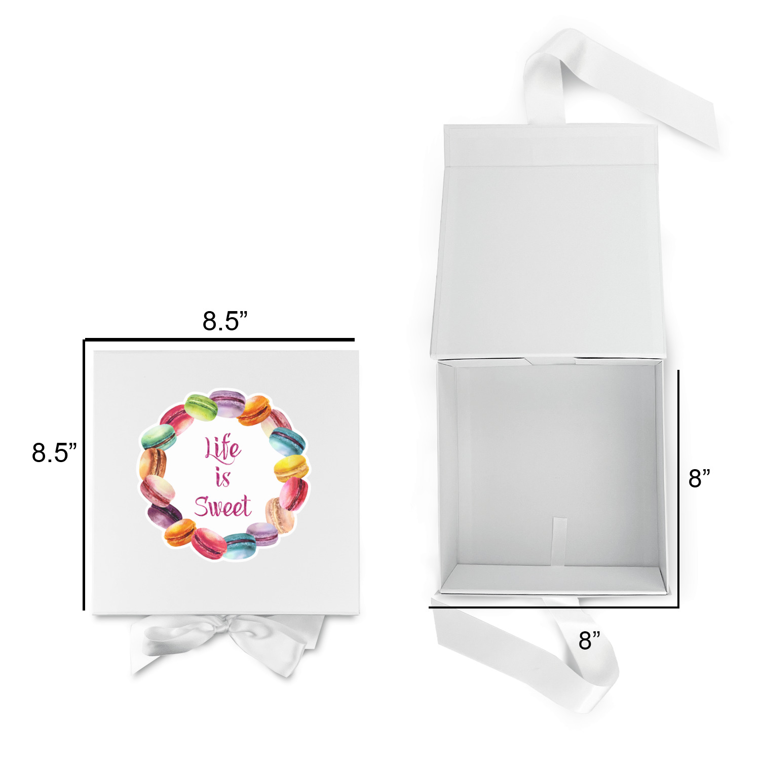 Made from a sturdy cardstock covered in a matte scratch resistant vinyl material, these boxes are sturdy and durable. A great size for most small gifts at 8" x 8" x 3", you are sure to be able to make it work for your gift giving.