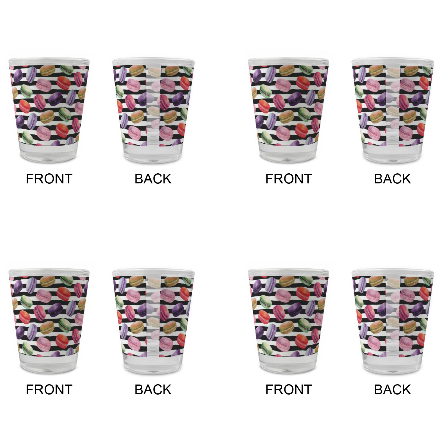 Made with frosted glass, these shot glasses are printed in full color with the design of your choice. They are a standard 1.5oz shot glass and are 2.4" tall. The print is wrapped around the shot glass in a full wrap and boldly displays your customization.