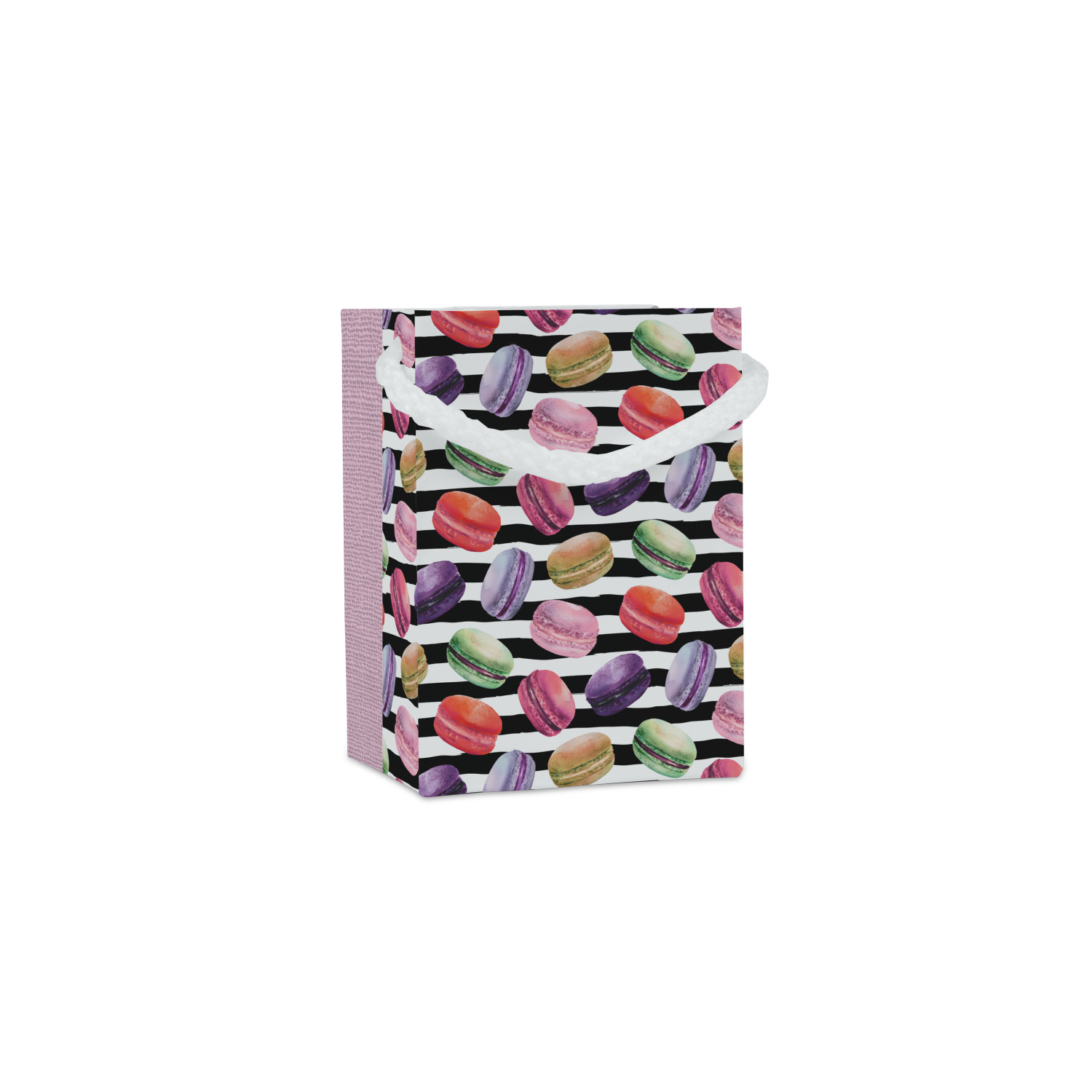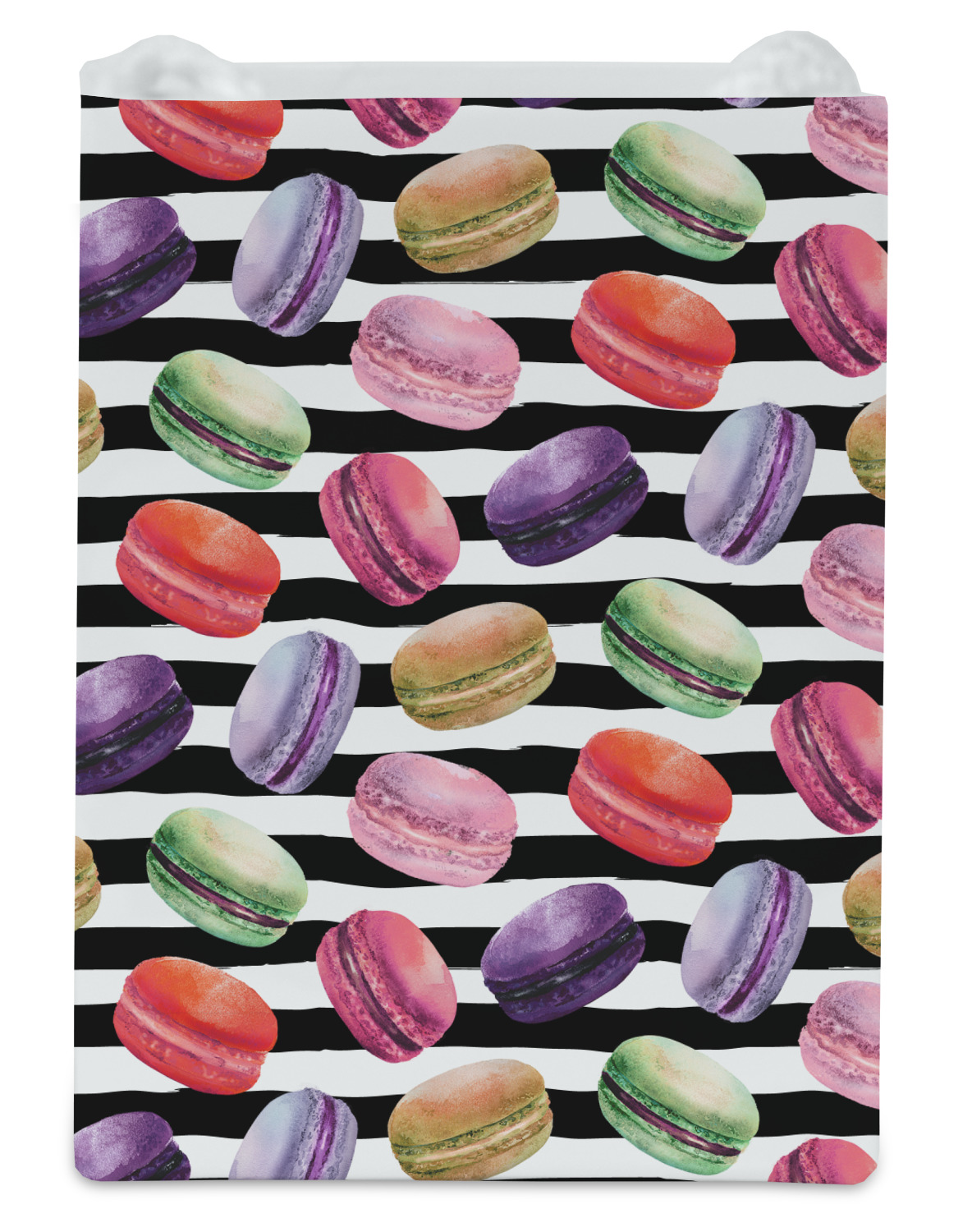 This design simply has the adorable macaron pattern with a striped pattern behind it. You are easily able to add any content you wish to personalize it. The macarons are all different fun colors. You will see green, purple, yellow, red, and pink. The stripes directly behind them are black and white. This design is perfect for any macaron lover or foodie. They will be sure to brighten up your life.