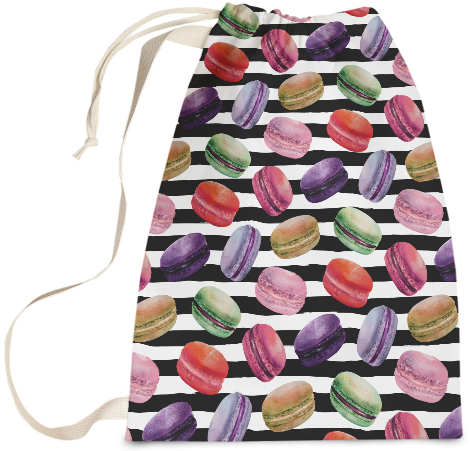 Our laundry bags are handmade in the USA; The fabric is printed using dye sublimation. The fabric is then cut and the grommets are added for the drawstring closure. The laundry bag is then sewn and the drawstring is fed through and knotted to create the cinch closure.