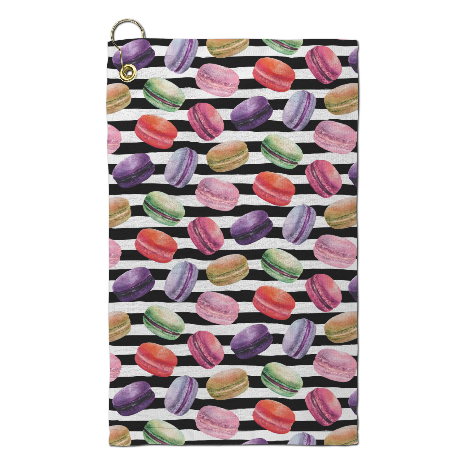 This design simply has the adorable macaron pattern with a striped pattern behind it. You are easily able to add any content you wish to personalize it. The macarons are all different fun colors. You will see green, purple, yellow, red, and pink. The stripes directly behind them are black and white. This design is perfect for any macaron lover or foodie. They will be sure to brighten up your life.
