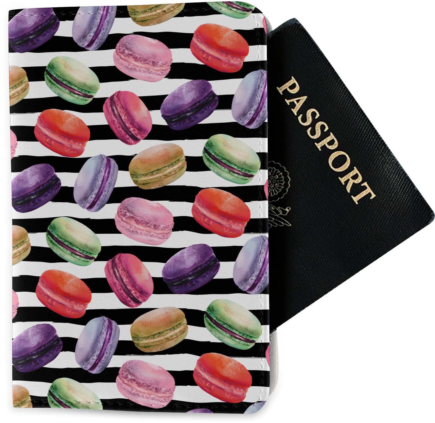 The passport holder has a beautiful inside made of faux leather, while the outside is a smooth slick vinyl like material printed with your personal design.