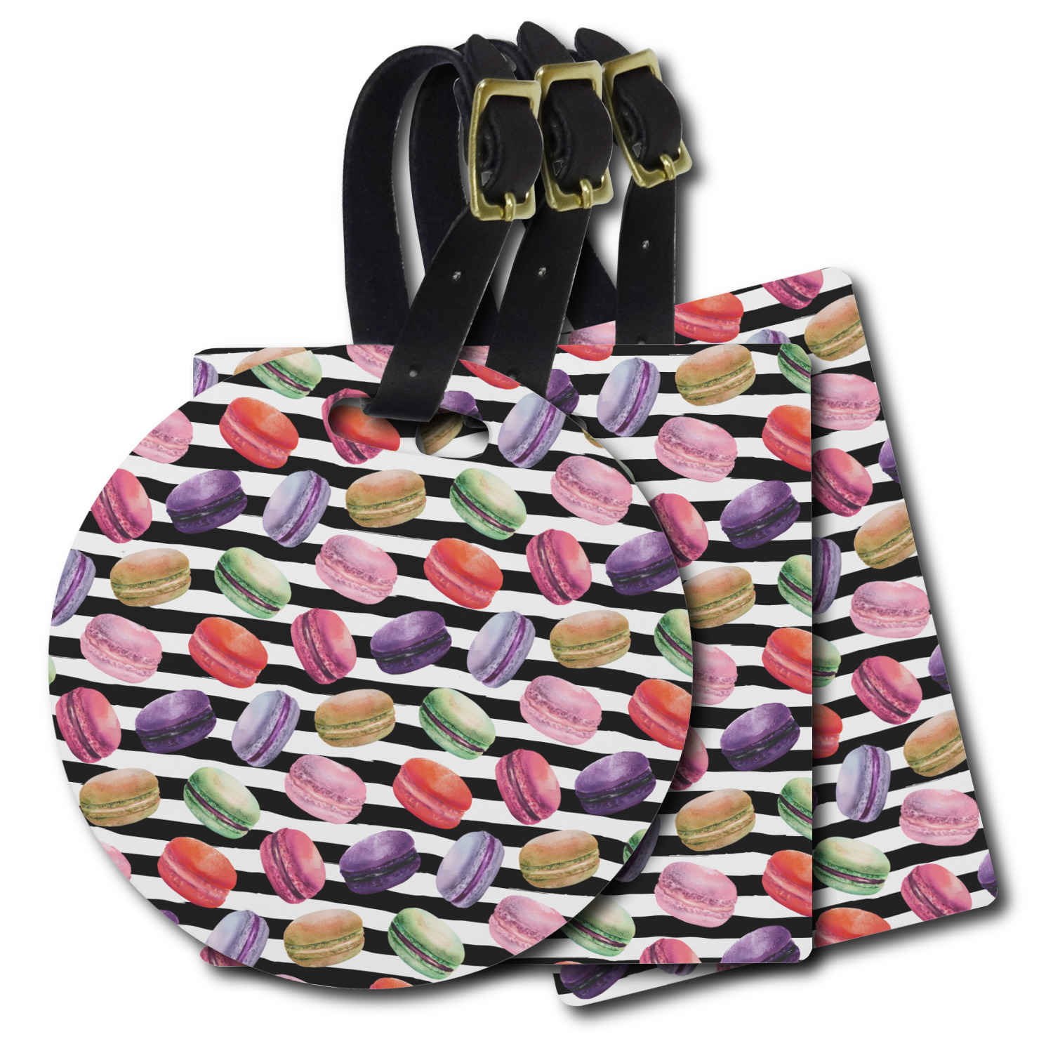 These personalized bag tags are sold in a variety of shapes, so that you may find the product that meets your vision exactly. We sell a round luggage tag, which measures at approximately 4" x 4". Our square luggage tag is about 3.5" x 3.5", while our rectangular version is 2.75" x 4 ".
