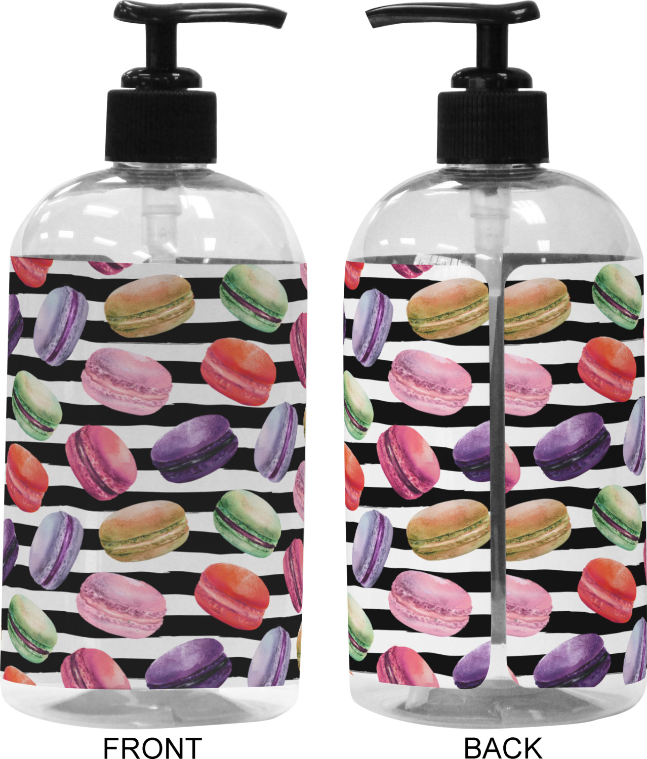 This design simply has the adorable macaron pattern with a striped pattern behind it. You are easily able to add any content you wish to personalize it. The macarons are all different fun colors. You will see green, purple, yellow, red, and pink. The stripes directly behind them are black and white. This design is perfect for any macaron lover or foodie. They will be sure to brighten up your life.