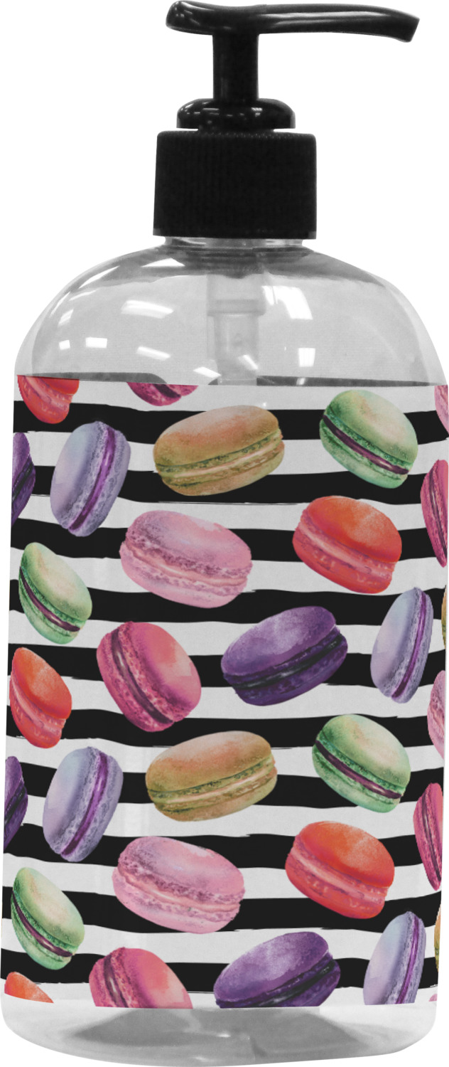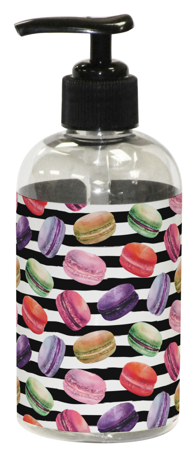 This design simply has the adorable macaron pattern with a striped pattern behind it. You are easily able to add any content you wish to personalize it. The macarons are all different fun colors. You will see green, purple, yellow, red, and pink. The stripes directly behind them are black and white. This design is perfect for any macaron lover or foodie. They will be sure to brighten up your life.