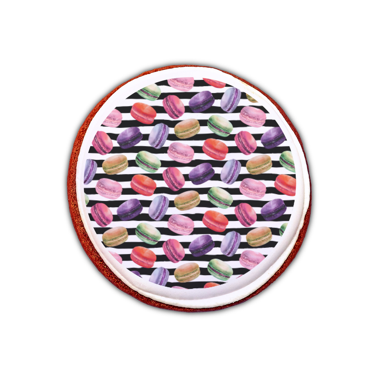 Our cookie toppers are printed in full color with FDA approved edible inks. The toppers are printed on premium wafer thin icing sheets (not wafer paper) and then cut into circles.