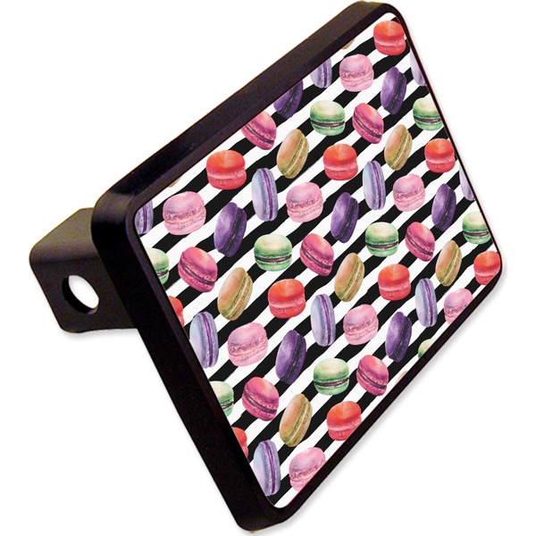 Our receiver hitch covers are molded, durable, and available in a size that fits 2in., square receiver holes. This model is best suited for a Class 3 or Class 4 hitch, but please consult our hitch sizing guide to make an informed purchase. We print your design on the surface of the rectangular cover, while the rest of the cover is a sleek, black color. The design's vibrancy will last up to 2 years in harsh sunlight. Designed for easy attachment, the cover slides easily into your trailer hitch and can be secured using a pin (not included).