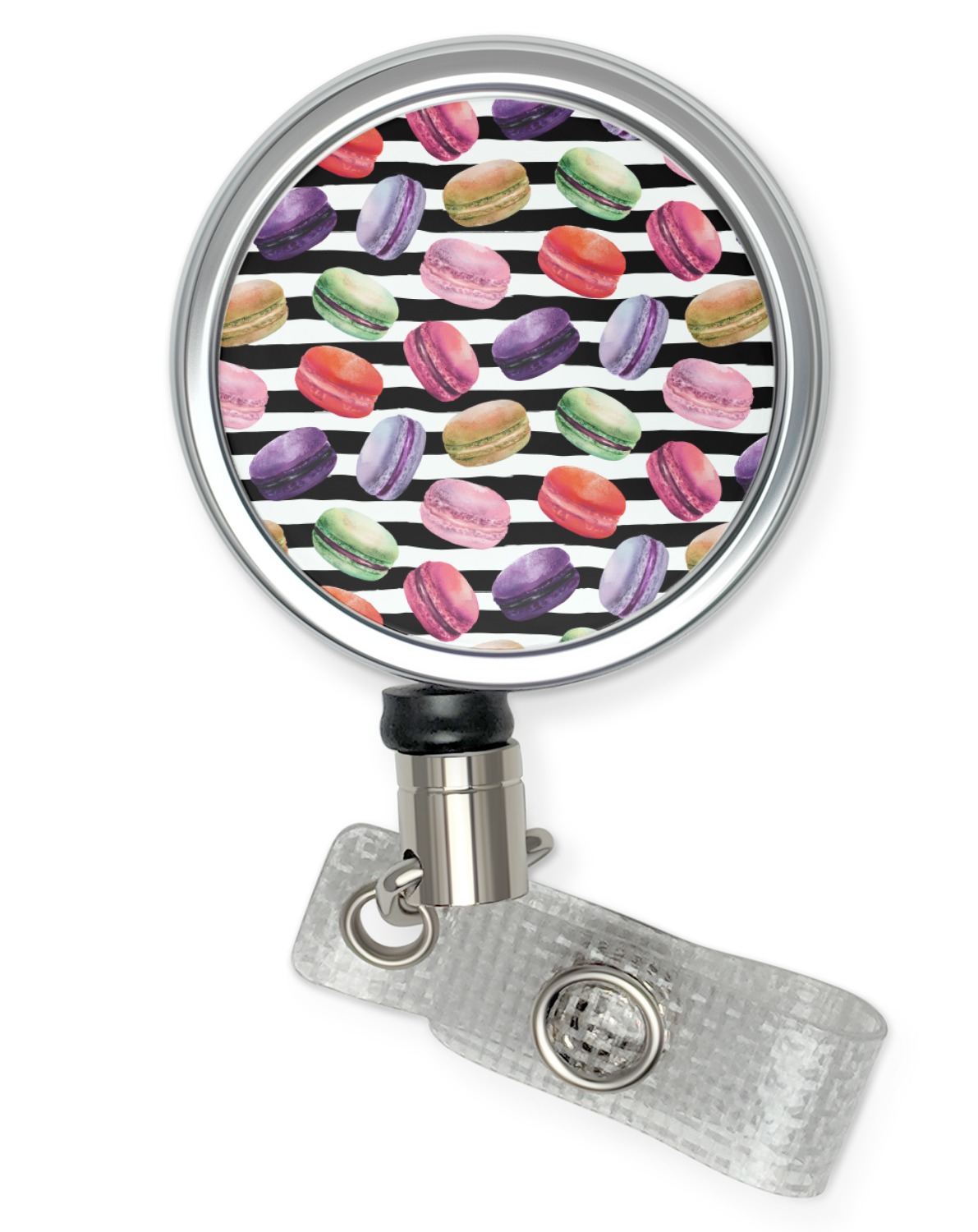 This design simply has the adorable macaron pattern with a striped pattern behind it. You are easily able to add any content you wish to personalize it. The macarons are all different fun colors. You will see green, purple, yellow, red, and pink. The stripes directly behind them are black and white. This design is perfect for any macaron lover or foodie. They will be sure to brighten up your life.