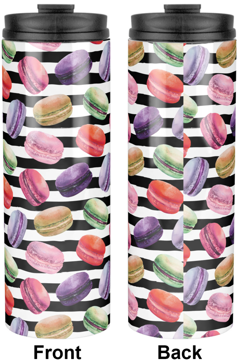 This design simply has the adorable macaron pattern with a striped pattern behind it. You are easily able to add any content you wish to personalize it. The macarons are all different fun colors. You will see green, purple, yellow, red, and pink. The stripes directly behind them are black and white. This design is perfect for any macaron lover or foodie. They will be sure to brighten up your life.