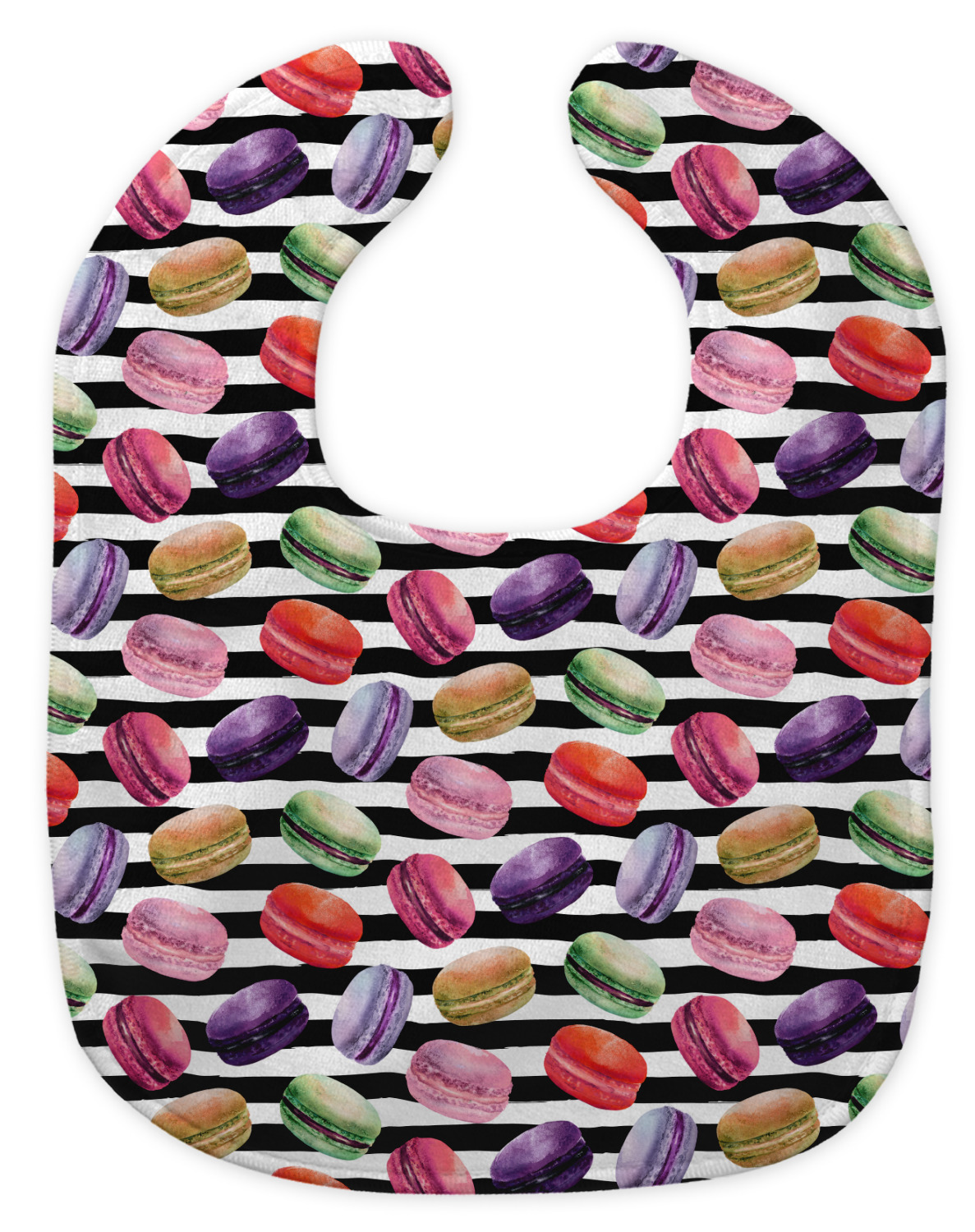 Made of soft polyester, each customizable bib hugs comfortably around the neck to catch every drip and drool. Each bib design is printed with baby-safe ink and finished with a secure stitch pattern and velcro clasp. We carry two customizable bib styles -Microfiber Velour and Jersey Knit.