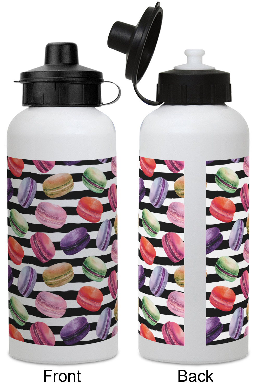 This design simply has the adorable macaron pattern with a striped pattern behind it. You are easily able to add any content you wish to personalize it. The macarons are all different fun colors. You will see green, purple, yellow, red, and pink. The stripes directly behind them are black and white. This design is perfect for any macaron lover or foodie. They will be sure to brighten up your life.
