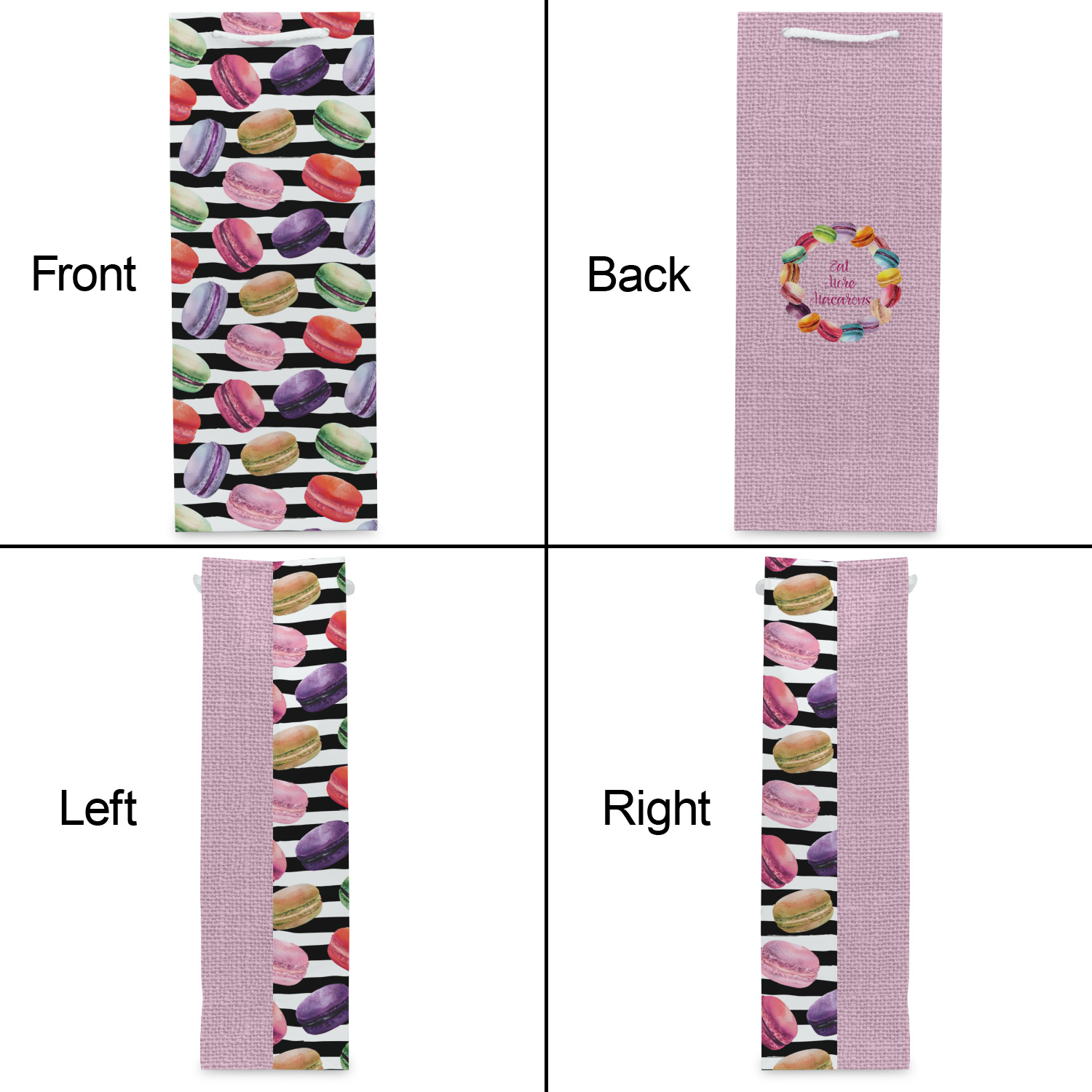 Our wine bags are printed on premium paper. The bags are then cut, scored and folded. The handles and cardstock base it attached. These custom wine bags are printed and made in the USA.