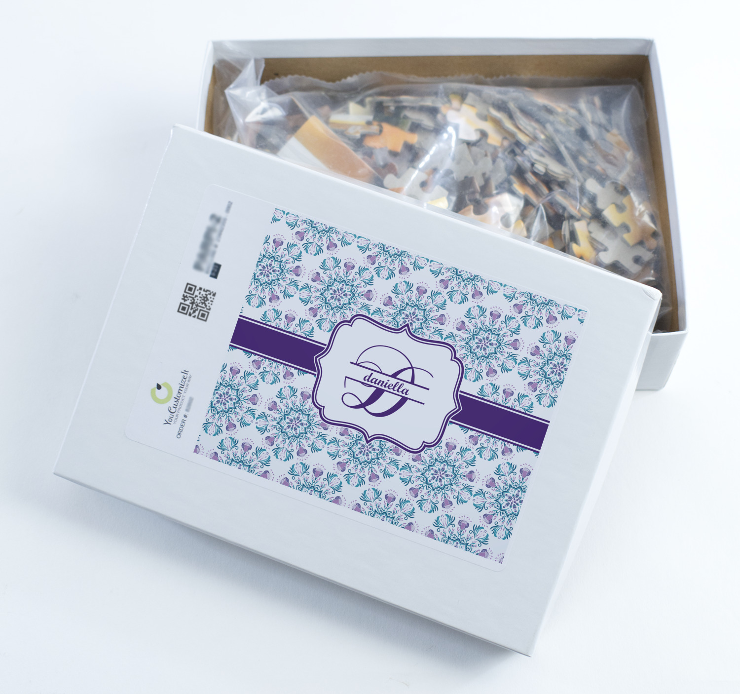 You can also upload your logo or art that you or your kids drew. To create more challenging jigsaw puzzles, you can create a pattern from with your logo or artwork. You can also add other elements such as text or personalization.