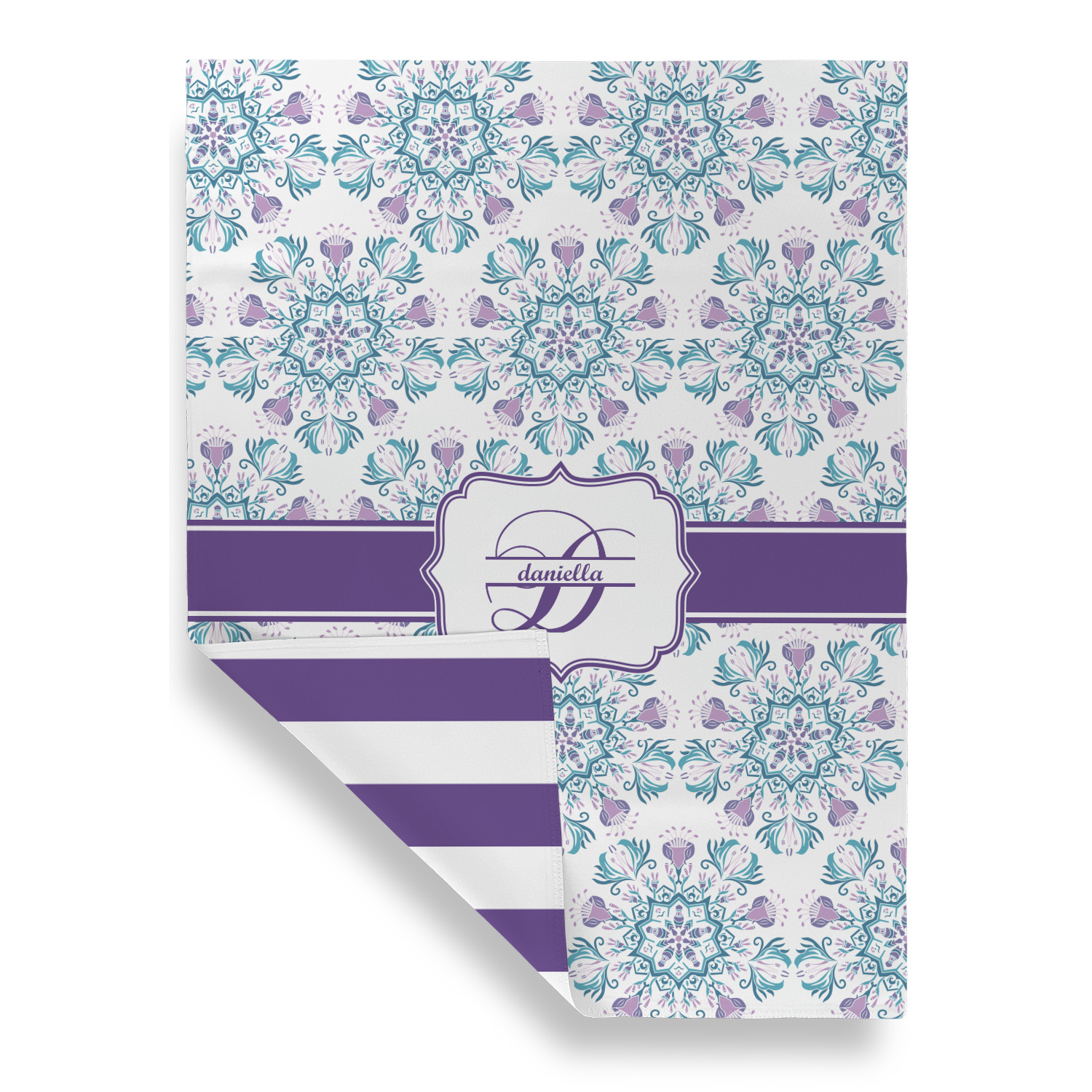 Find a your place in the universe with the Mandala Floral design. The core of this design is delicate flowers around the edge of mandalas. The flowers are a combination of purple and blue while the background is white.