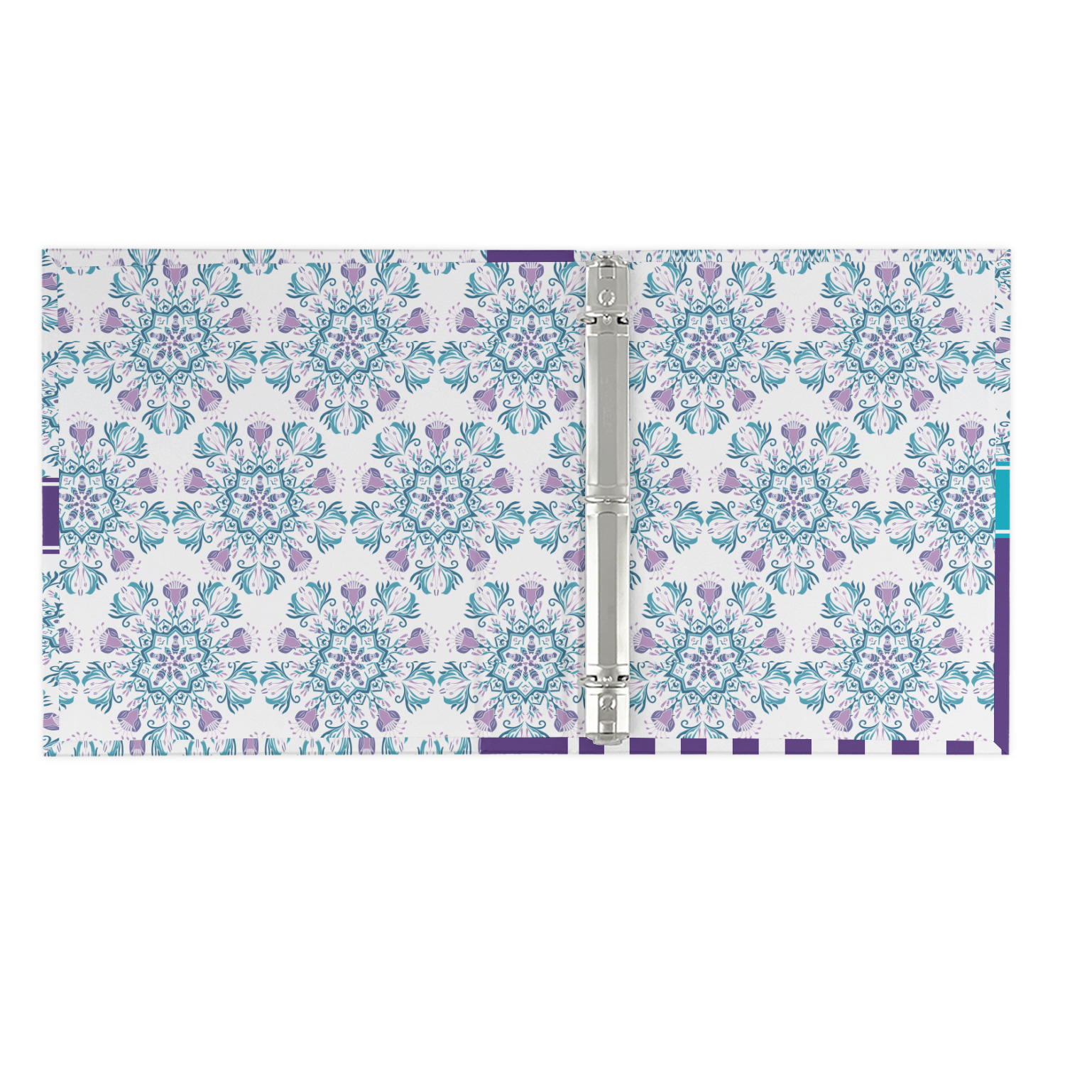 Made from a sturdy cardboard base with a full high quality canvas textured vinyl wrap with the design of your choice. Unlike our standard 3-ring binder with the full wrap design your artwork wraps from the front and back and into the inside of the binder.