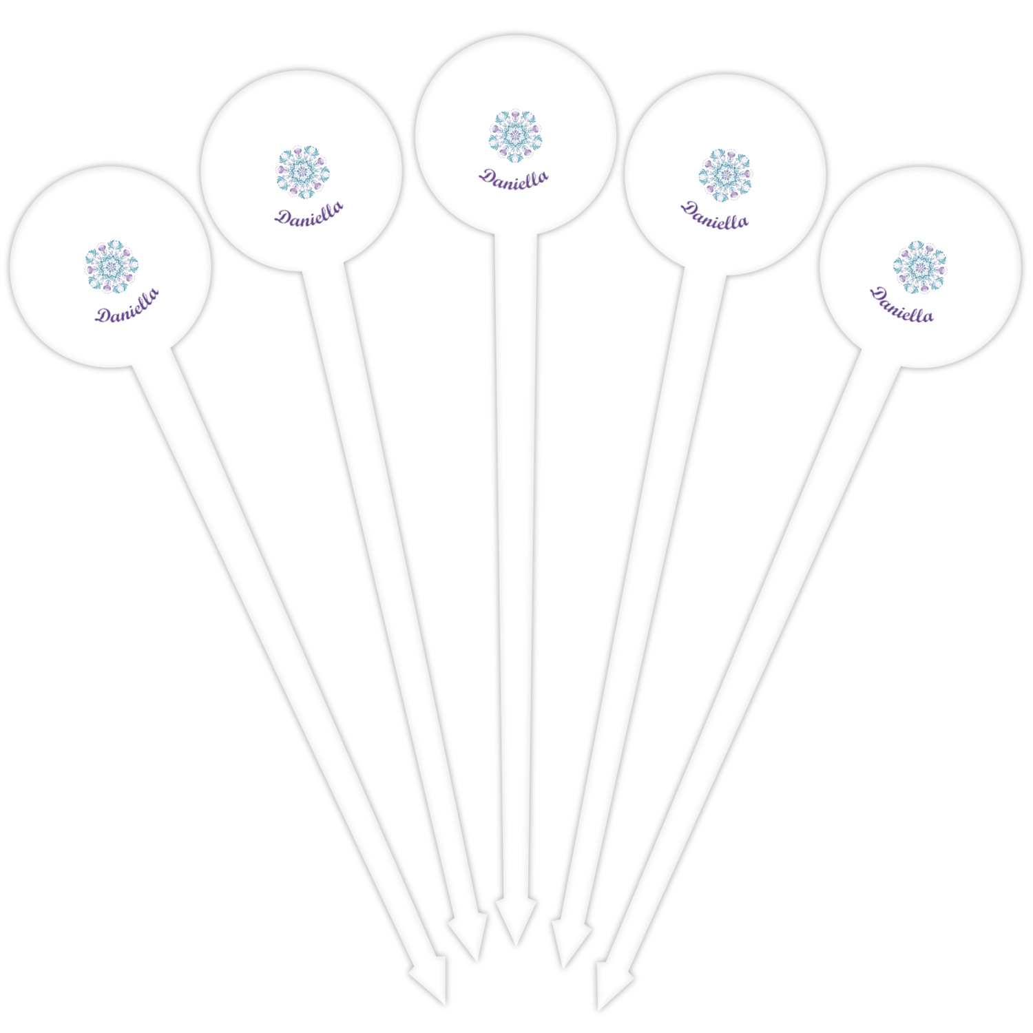 Our plastic cocktail picks have a round disc on top that is printed in full color with your event theme, colors, your logo, your photo, names, initials, monograms etc.