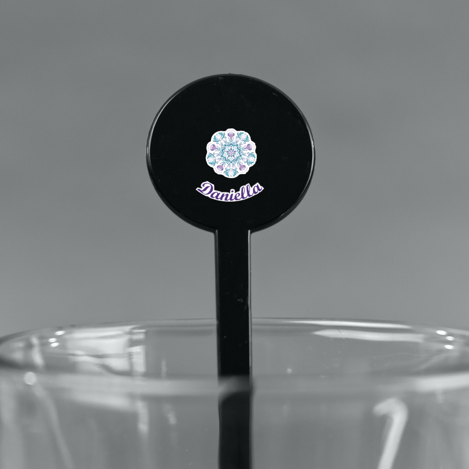 Shape + Symbol Designs for 7" Round Plastic Stir Sticks - Black - Single-Sided