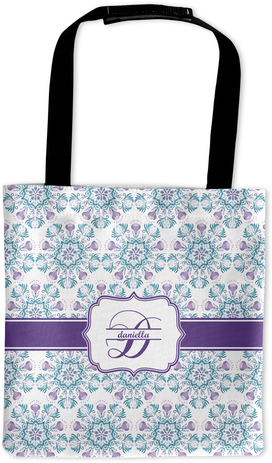 Find a your place in the universe with the Mandala Floral design. The core of this design is delicate flowers around the edge of mandalas. The flowers are a combination of purple and blue while the background is white.