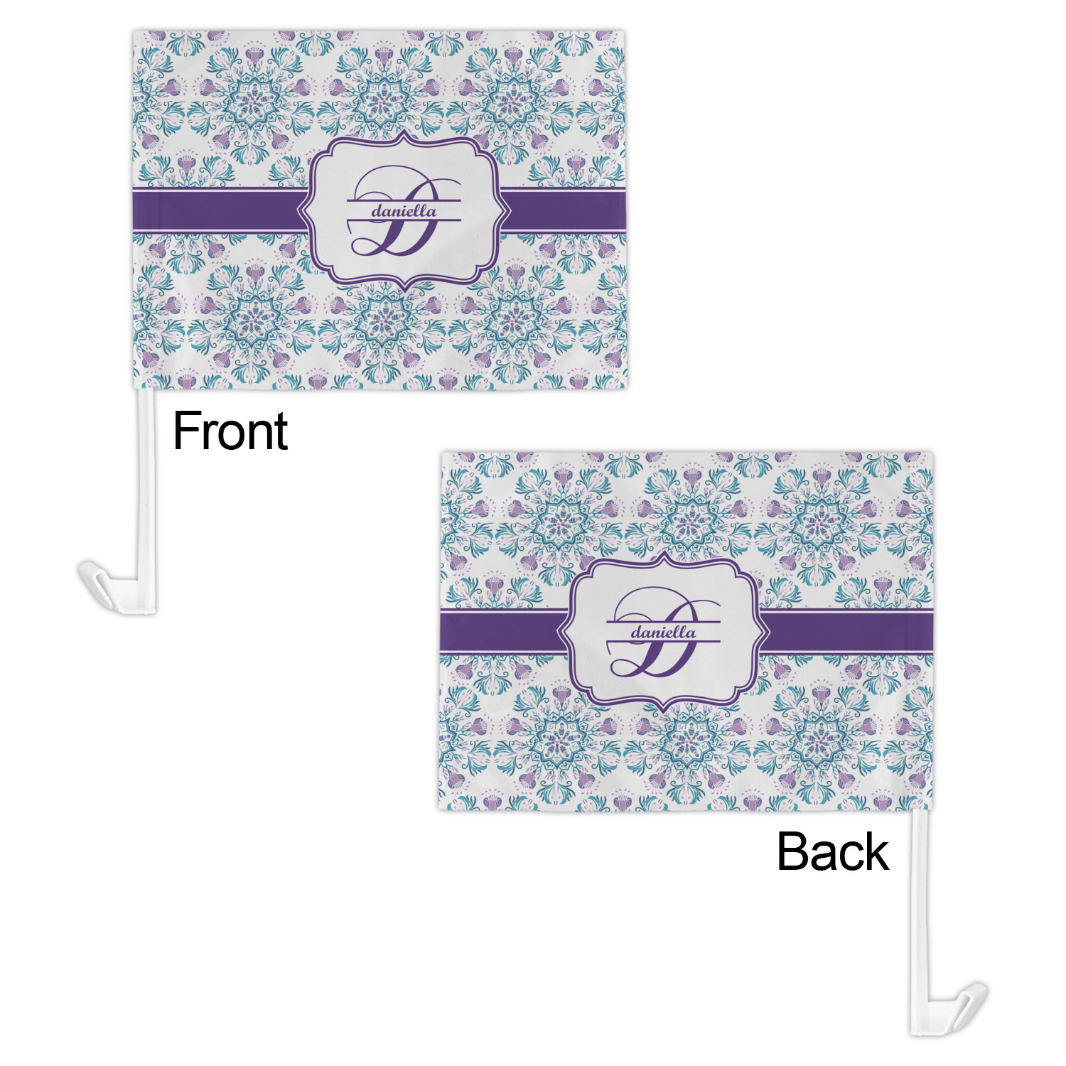 Our personalized flags are made from a durable, yet lightweight cloth that will proudly bear your logo or design of choice, while withstanding the outside elements. We have two size options - 8" x 11" and 11" x 15". Both come with a flag pole which includes a clip that secures the pole to the side window, whether it is rolled up or down. The flags are printed on both sides to display your design from all directions.