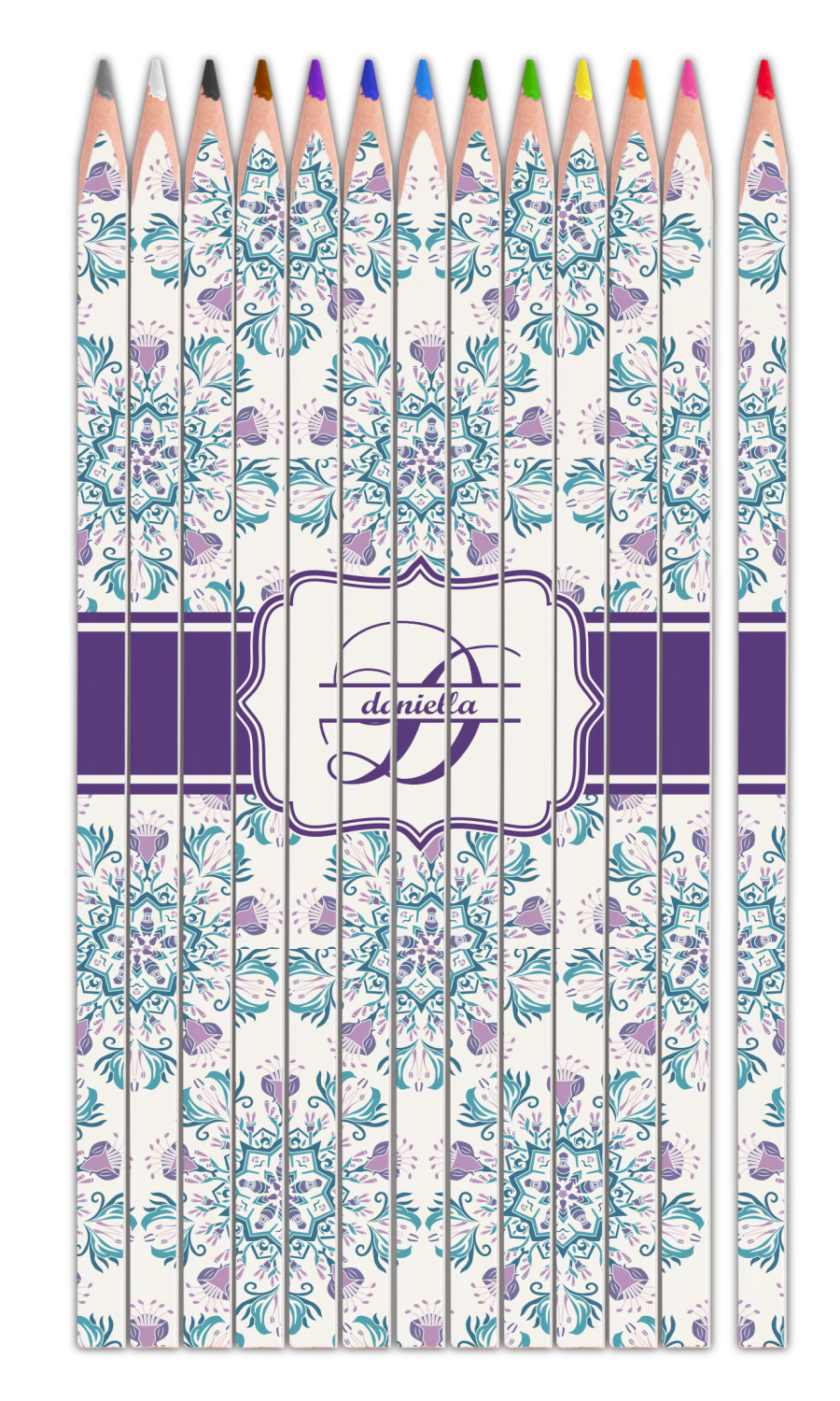 Find a your place in the universe with the Mandala Floral design. The core of this design is delicate flowers around the edge of mandalas. The flowers are a combination of purple and blue while the background is white.
