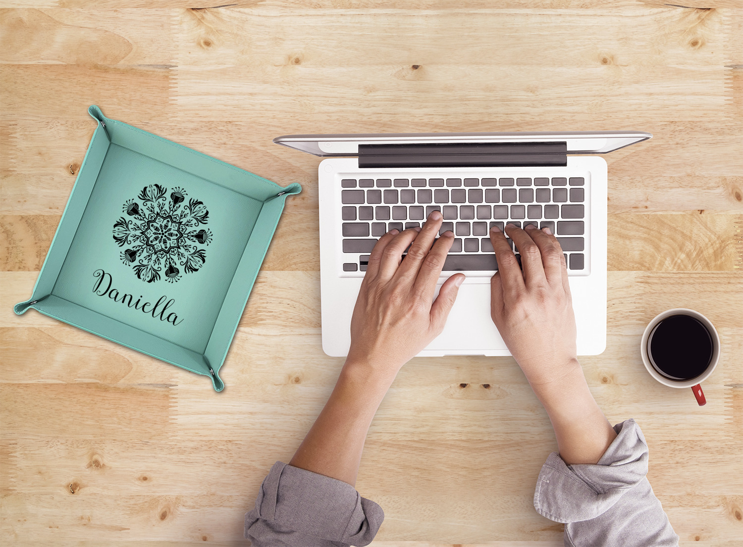 Shape + Symbol Designs for Faux Leather Dice Trays - 9" x 9" - Teal