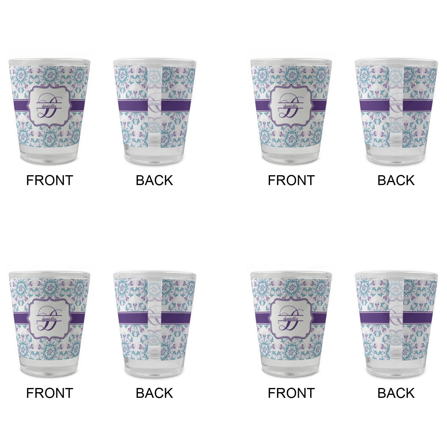 Made with frosted glass, these shot glasses are printed in full color with the design of your choice. They are a standard 1.5oz shot glass and are 2.4" tall. The print is wrapped around the shot glass in a full wrap and boldly displays your customization.