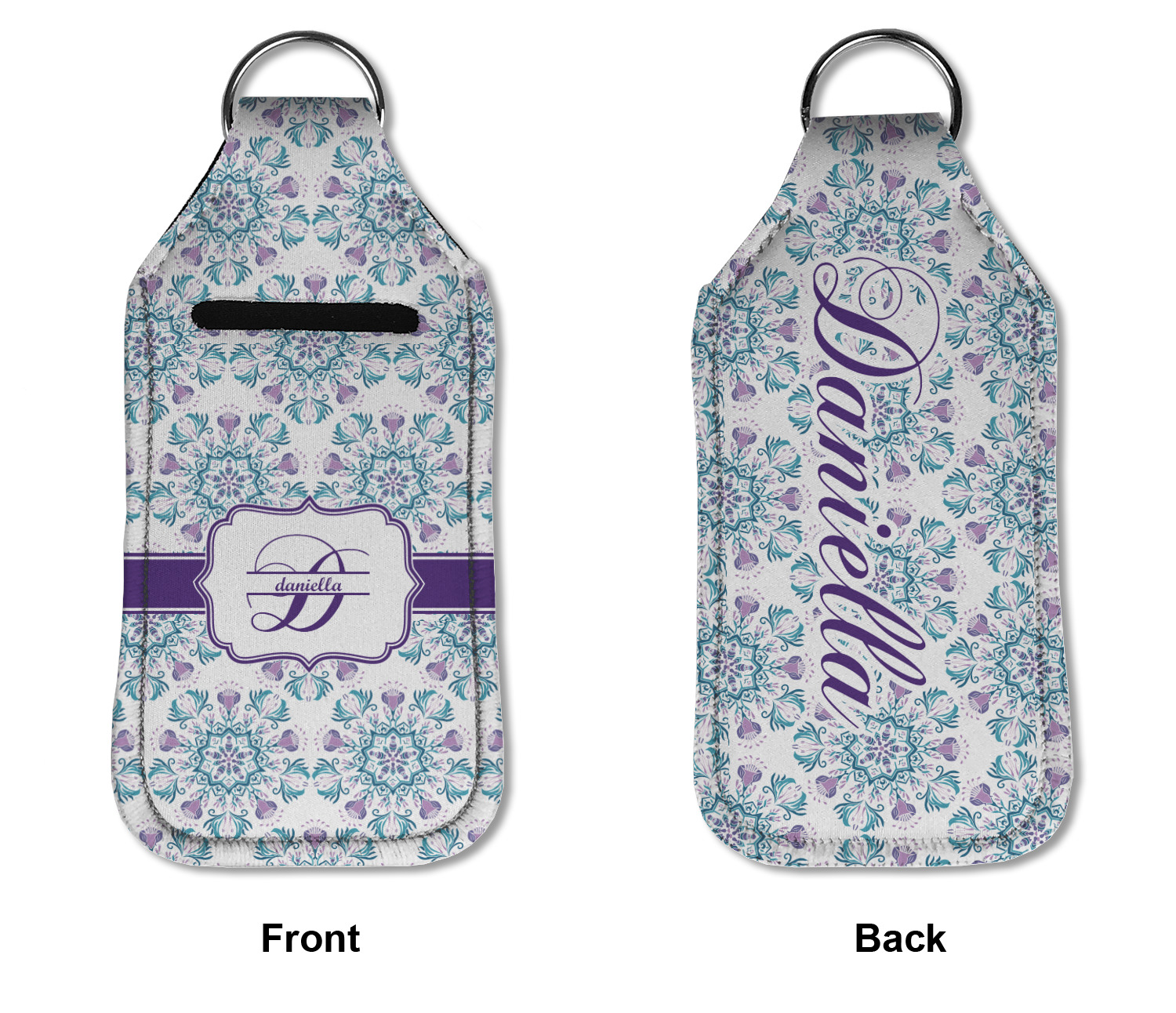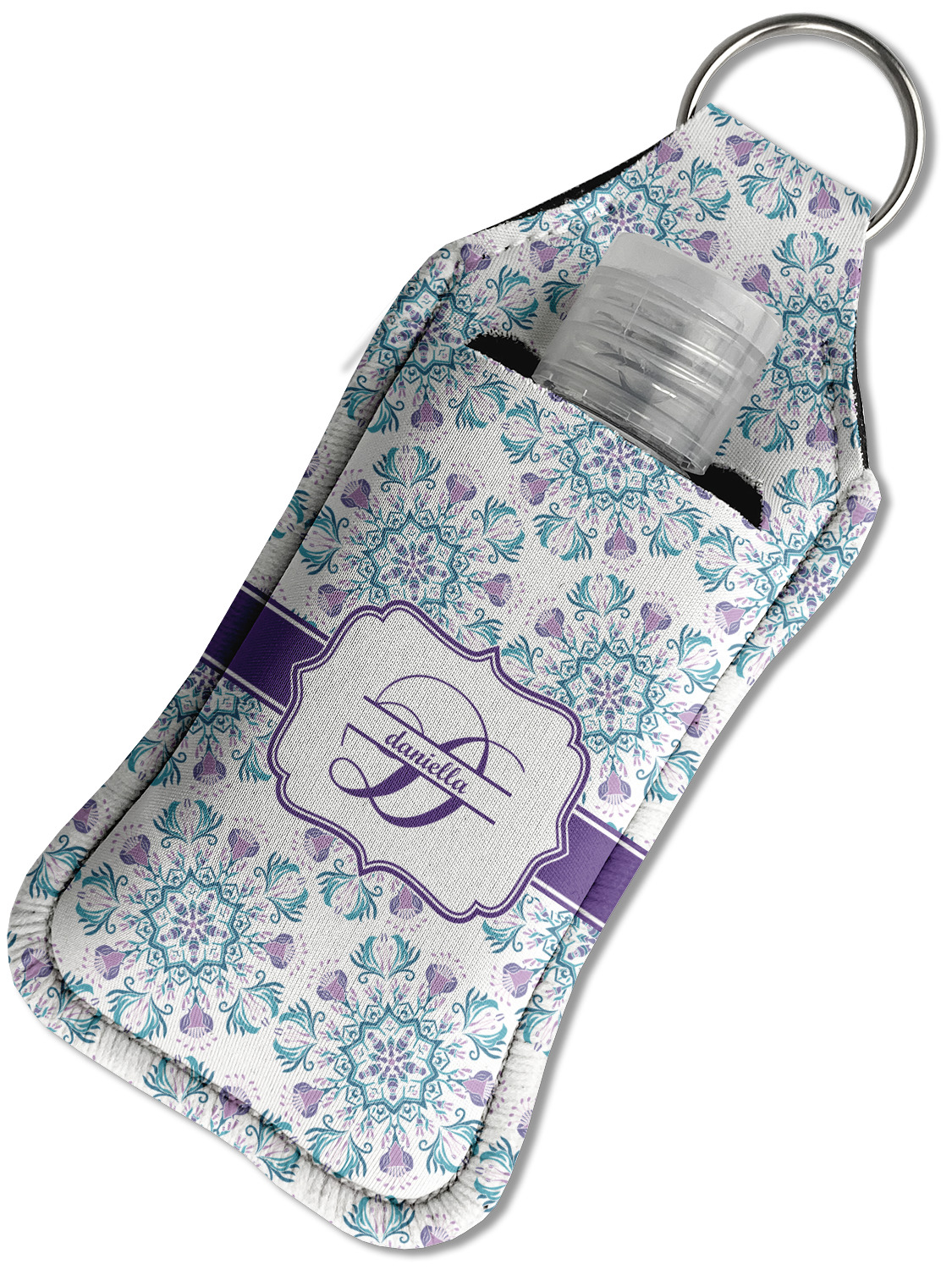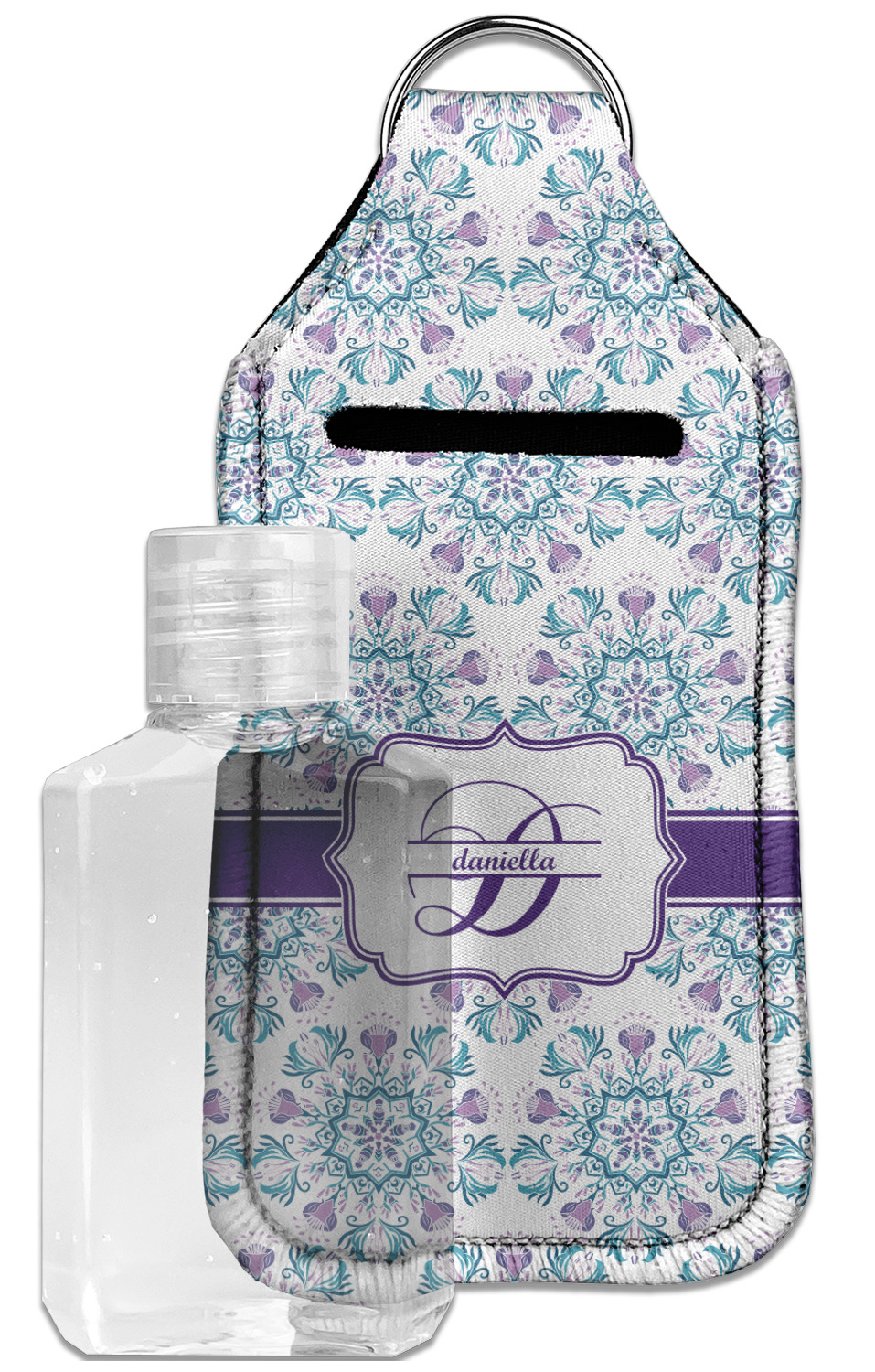 Each hand sanitizer holder comes with its own empty travel-sized, refillable hand sanitizer sure to fit snug in your customized sanitizer case! Our hand sanitizer cases are a durable, yet soft neoprene material sure to last any daily activities or travel agenda. Customize and personalize a hand sanitizer bottle holder with one of our two sizes - small (4.25" x 2.25") or large (5.5" x 2.5"). Each travel sanitizer holder comes with a keyring for attachment on bags, keys, or more!