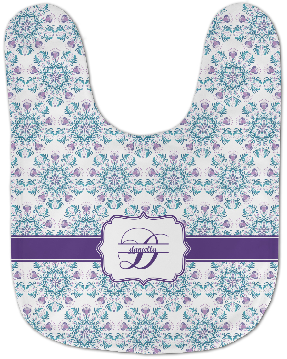 Made of soft polyester, each customizable bib hugs comfortably around the neck to catch every drip and drool. Each bib design is printed with baby-safe ink and finished with a secure stitch pattern and velcro clasp. We carry two customizable bib styles -Microfiber Velour and Jersey Knit.