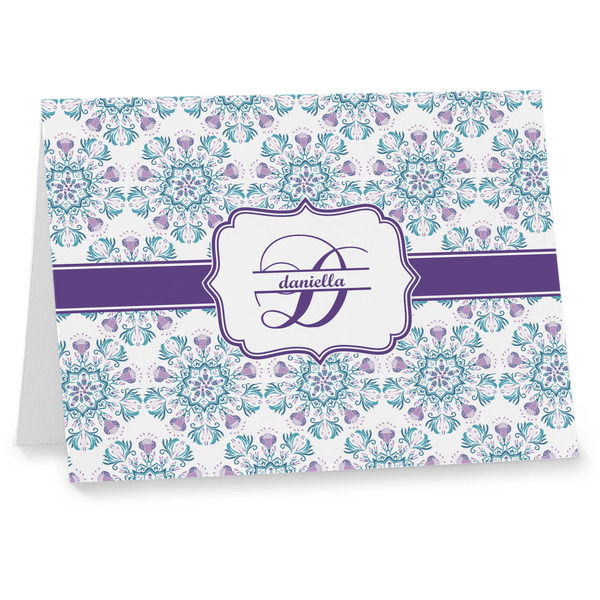 Our custom folded note cards are printed on premium 100lb. card stock and comes with white envelopes. The note card measure 5.5 by 4.25 inches and are blank on the inside for your handwritten message.
