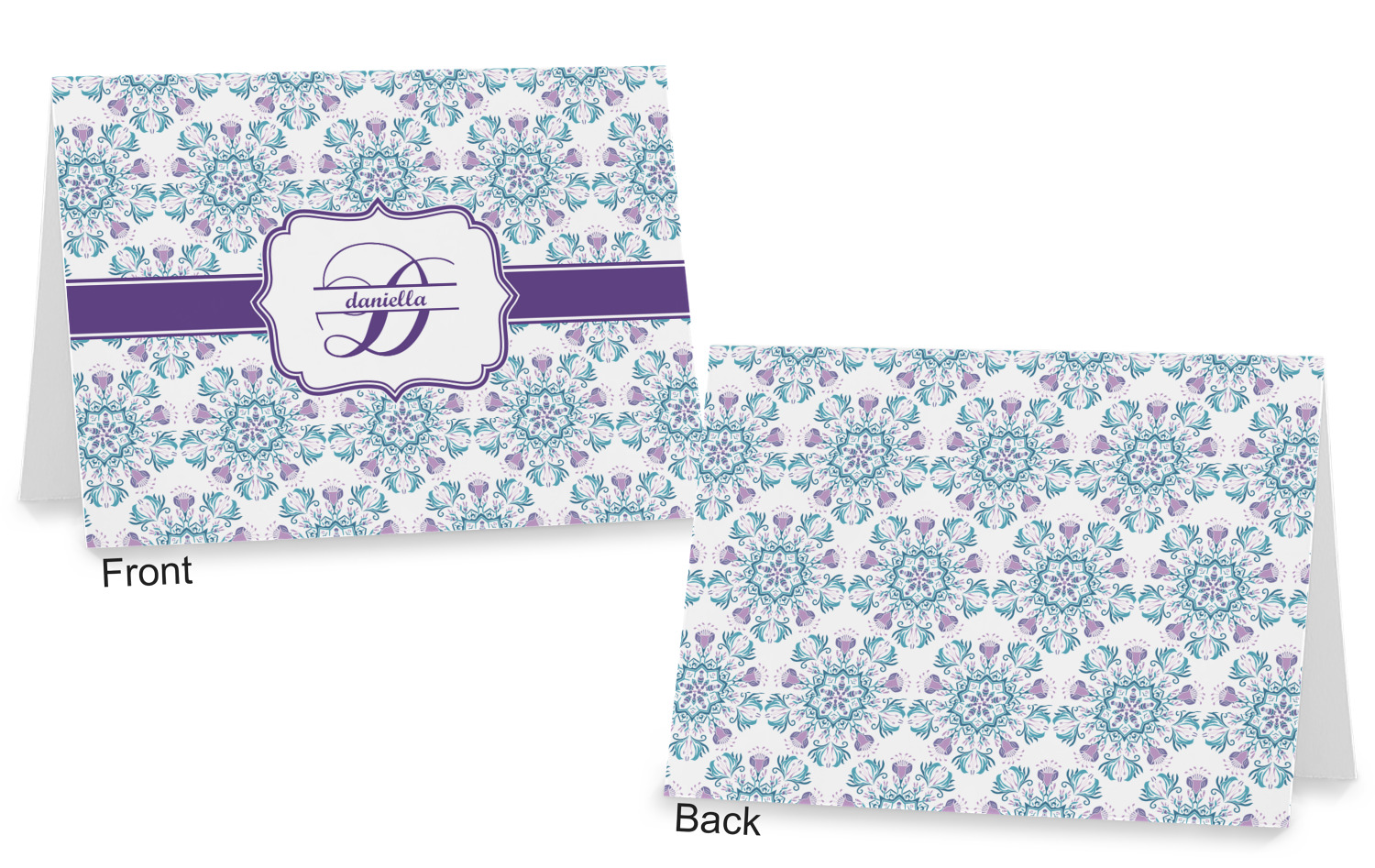 The cards can be customized horizontally or vertically. You can personalized the front AND the back to your exact specifications.