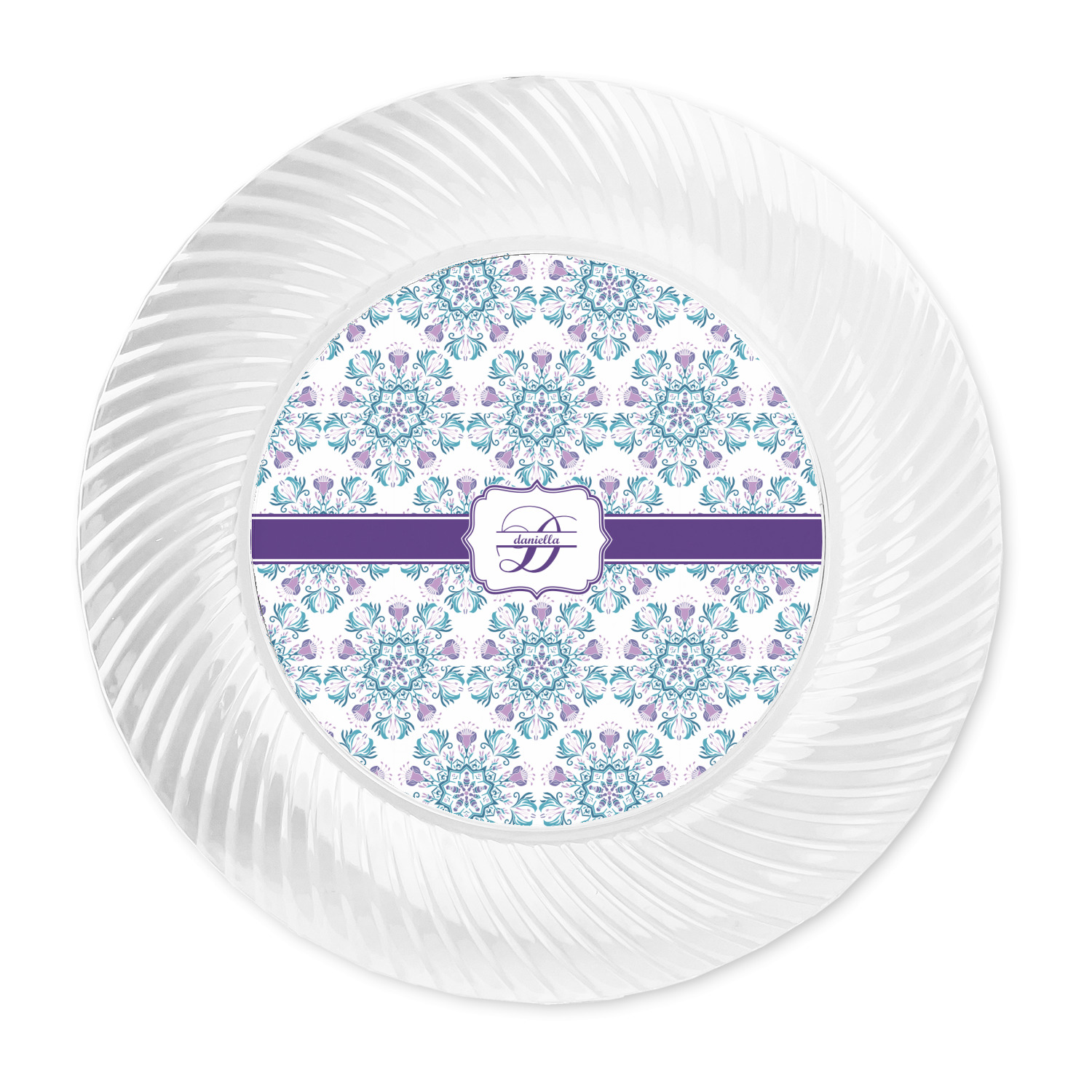 Made from a beautiful clear plastic plate as a base, your design is printed to the underside of the plate. The outside of these disposable plates has a classic swirl texture to it for a high quality look and feel.