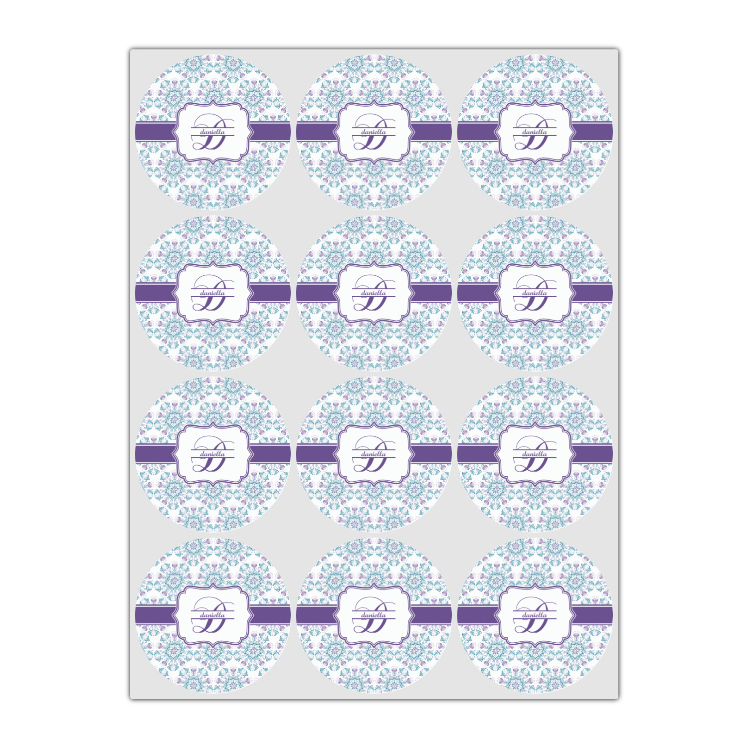 The design features a ribbon and label whose colors can be modified to any of our colors. In the center of the label, you can put your name and initial.