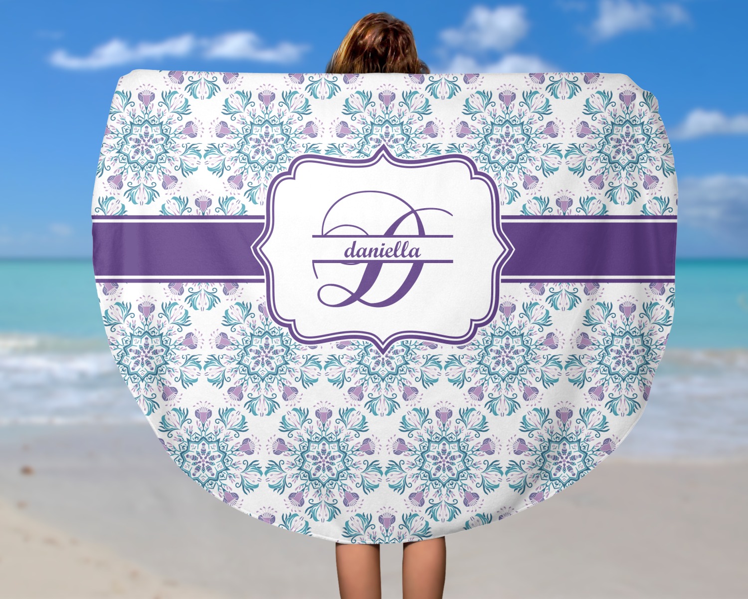Think out of the box on your next beach, pool, or picnic day in style on your personalized round towel. This must have durable accessory is the perfect size for keeping you, and your possessions out of the sand. Sprawl out in the sun without getting your hands dirty, the unique round design allows for a full range of motion.