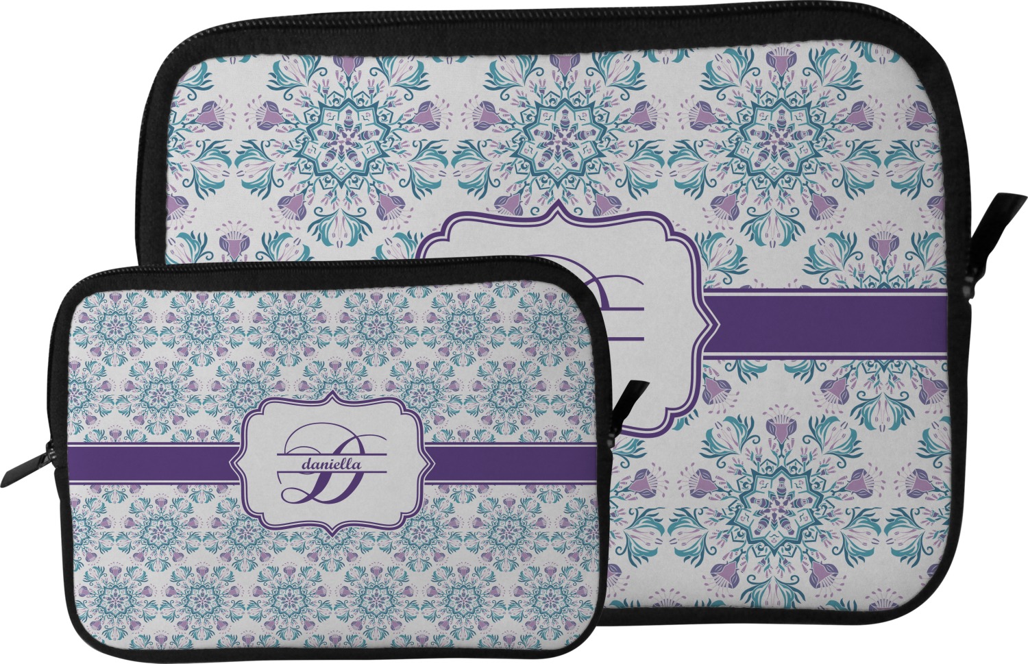 These tablet covers are fabricated from a water-resistant neoprene, and feature a zipper at its top for easy access to your device. The supple, cushioned nature of the neoprene will protect your tablet from the mishaps of daily life. Your personalized design is printed on the front of the I-Pad case, while the remaining sides are black in color. We provide this case in two sizes, in order to best accommodate your device. Our smaller size can fit a tablet with an 11 inch screen, while our larger sleeve is better suited for devices with approximately a 13 inch screen.