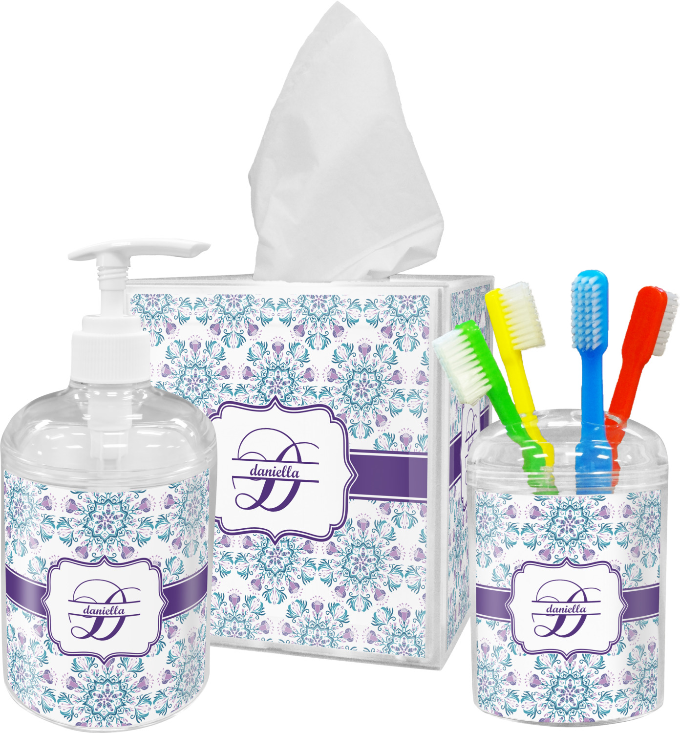 These tissue holders are built from durable acrylic and display your unique personalization on fine-quality vinyl inserts placed within the four sides and top. The box features two pieces, allowing you to easily switch out tissue boxes. On the sides, youll find ridges that ensure the top and base fit securely in place. The bottom of these tissue box holders has four, rubber, non-slip pads to prevent the box from scuffing any surface you decide to display it on. Each box can fit a standard 5 by 5-inch box of tissues.