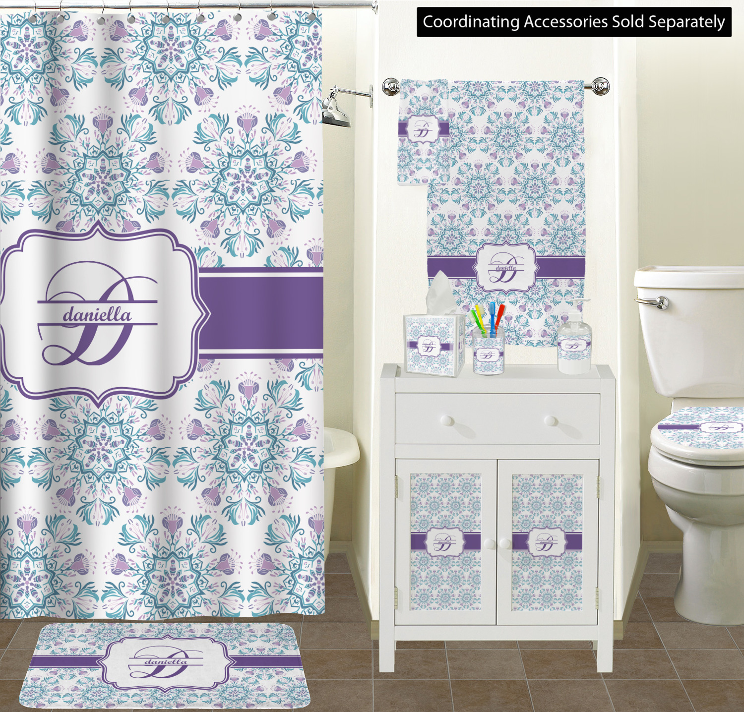 Find a your place in the universe with the Mandala Floral design. The core of this design is delicate flowers around the edge of mandalas. The flowers are a combination of purple and blue while the background is white.