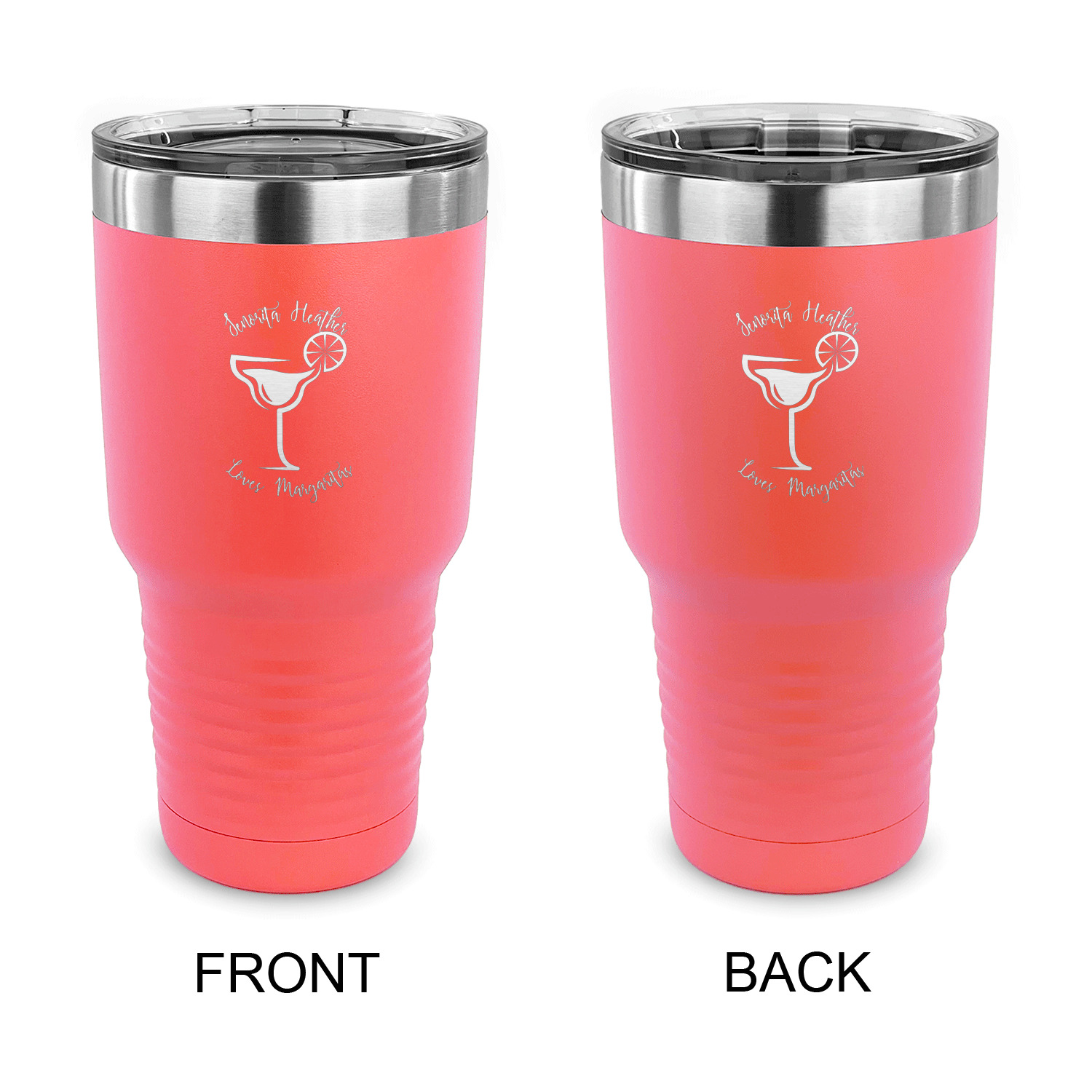 With the 5 colors - Black, Navy, Red, Pink and Coral, you are sure to find a cup to fit your personality. You can chose to engrave on the front or the front and back of the cup. Use our design studio to design your own cup and we laser engrave it for you.